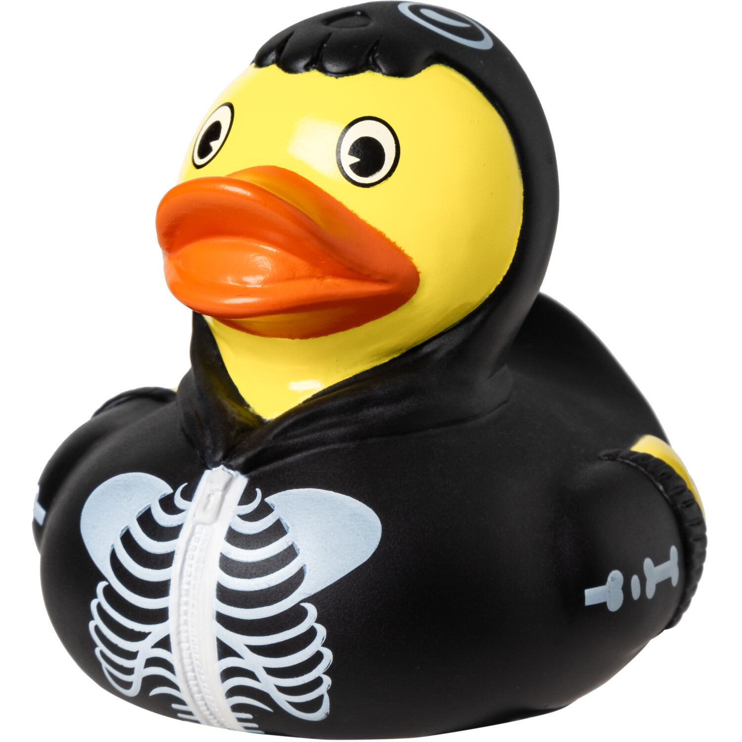 Make your little one's bathtime spooktacular with the Skeleton Rubber Duck. Featuring a Halloween-ready look, this adorable rubber duck is dressed in a skeleton costume to give it a spooky look. Cute and festive, it's a great way to make bathing more fun for your child.