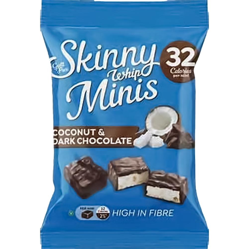 Mini Nougat Bars With Desiccated Coconut Coated In Dark Chocolate.Guilt Free. 32 Calories Per Mini. High In Fibre. Suitable For Vegetarians.