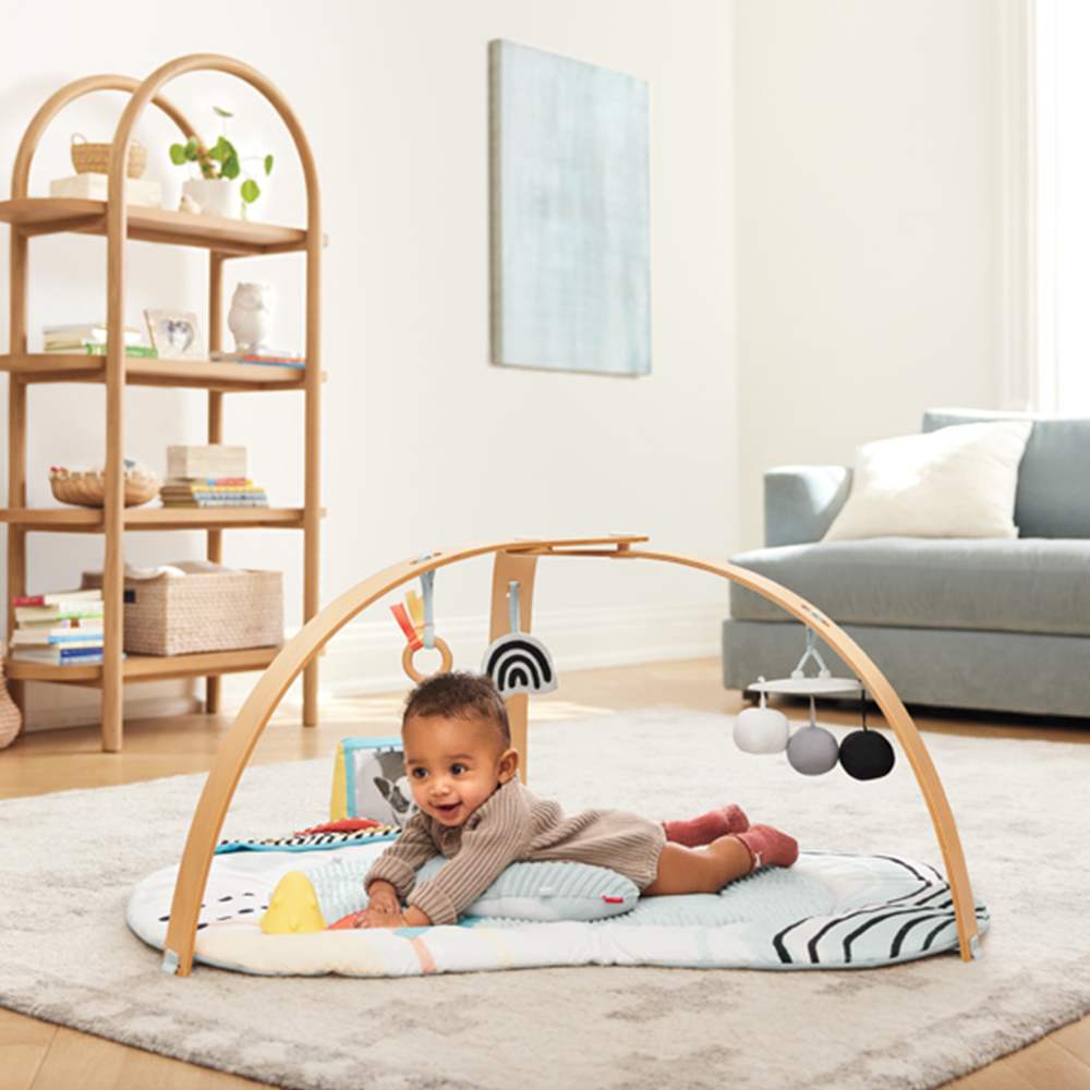 Make an adorable and functional addition to your little one’s toy collection with the Skip Hop Discoverosity Play Gym. It is designed in collaboration with experts in Montessori education and offers a balance of calming simplicity and an engaging sensory environment. This gym enhances a baby’s natural curiosity and development while improving vision, concentration and fine motor skills. It is crafted with sustainably sourced wooden arches and a plush sensory playmat. The five nature-inspired developmental toys include contrasting patterns, crinkle sounds and a baby mirror to encourage self-directed activity and exploration. The six parent cards guide you through the gym’s milestone-driven play to discover, learn and grow together.