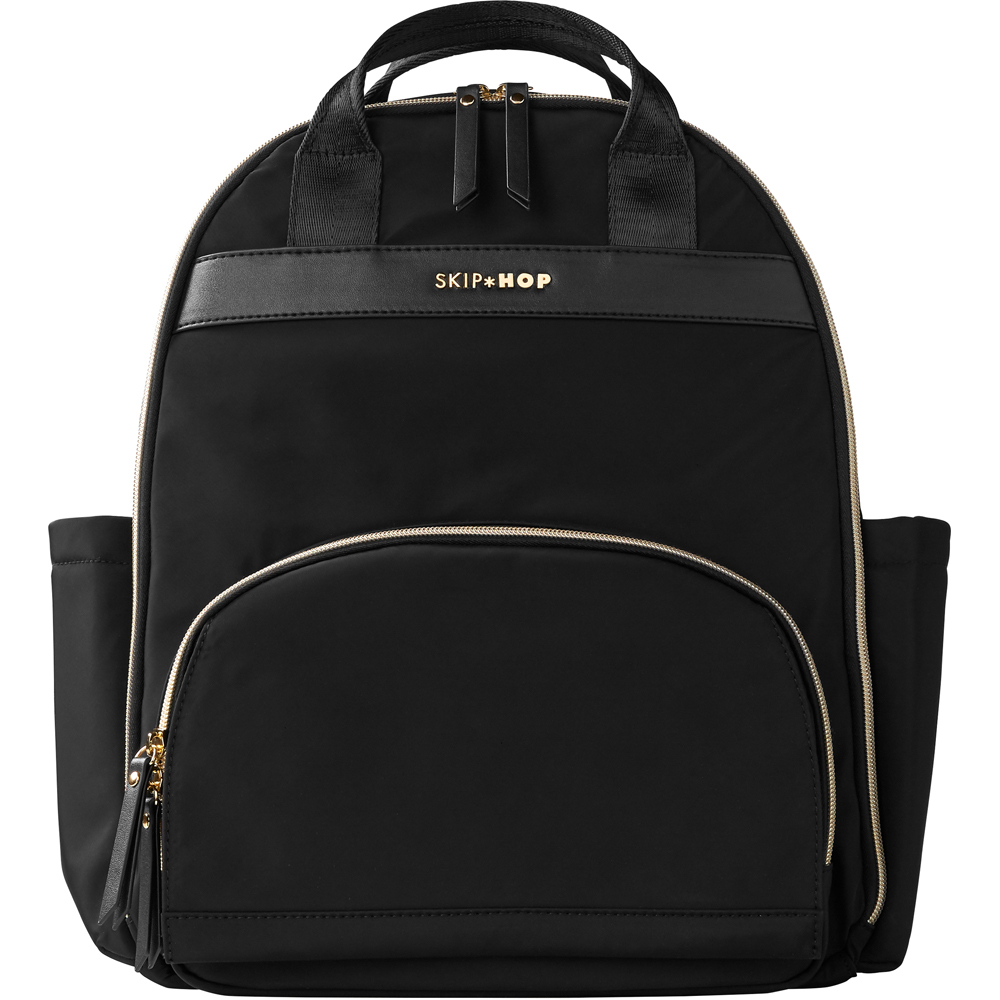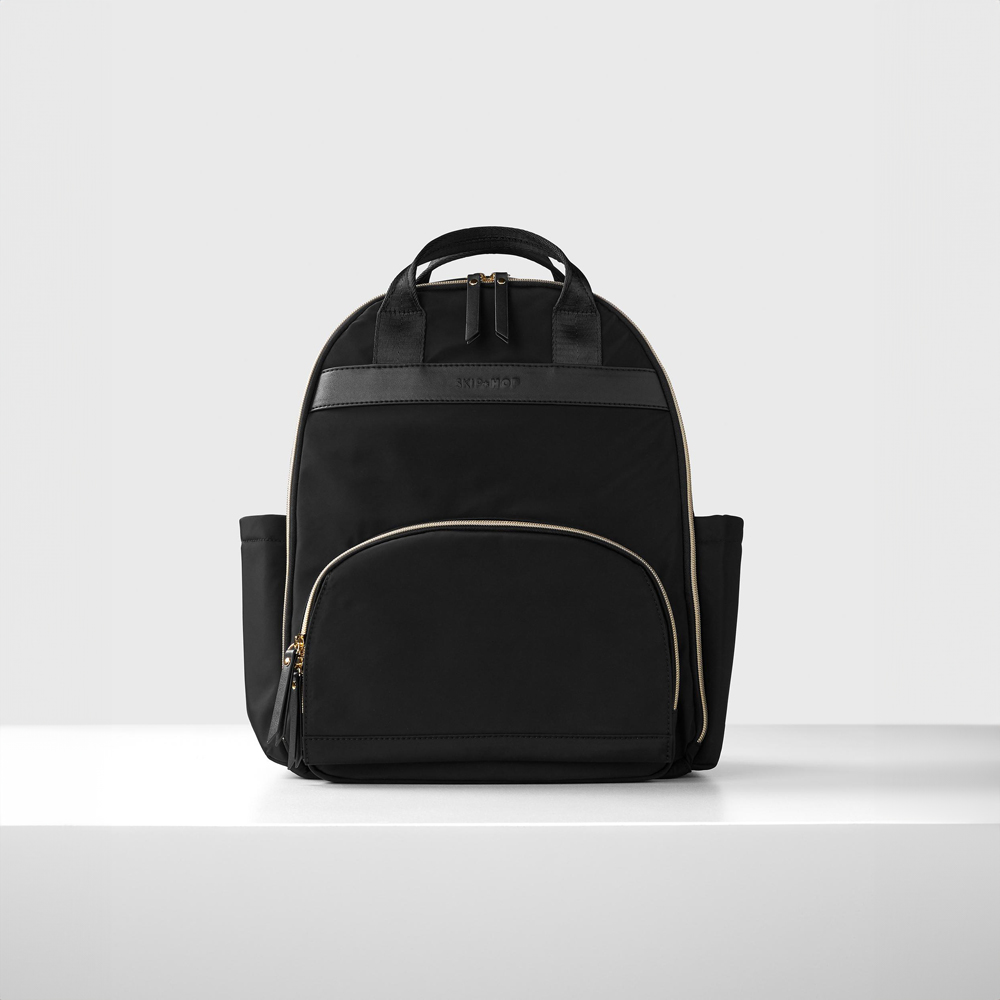 Add comfort and functionality with Skip Hop Envi Luxe Diaper Black Backpack. Featuring lightweight, yet sturdy, exterior fabric made from recycled PET bottles, the recycled material helps protect our planet by reducing waste. A go-everywhere essential for Earth-conscious parents, this streamlined eco-friendly diaper bag is loaded with 10 pockets, including an easy-access wipes compartment with a magnetic flap closure. A wide opening and roomy interior make it a cinch to pack and organize all the essentials for baby and you.