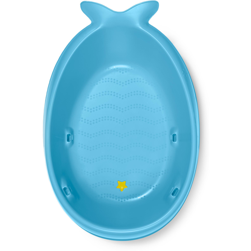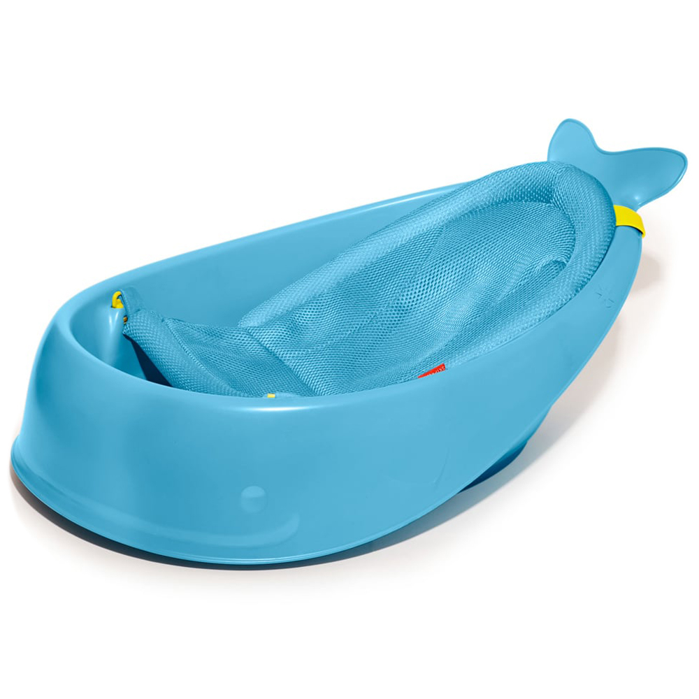 Add your and your child's comfort with Skip Hop Moby Blue Smart Sling 3 Stage Tub. The sling locks into two ergonomic positions: higher for full-body support and lower for seated support. Quick-drying mesh and comfort-edge construction securely cradles baby from head-to-toe. The slings adjusts to a cushioned seat that comfortably supports babies learning to sit. Remove the sling when baby has mastered sitting and easily bathe baby in the spacious tub—no uncomfortable plastic bumps. It grows with baby through 3 stages with stage 1: Newborn, with 0-3 months; up to 15 lbs, stage 2: Infant, with 3-6 months; up to 20 lbs, stage 3: Sitters, with 6+ months; up to 25 lbs.