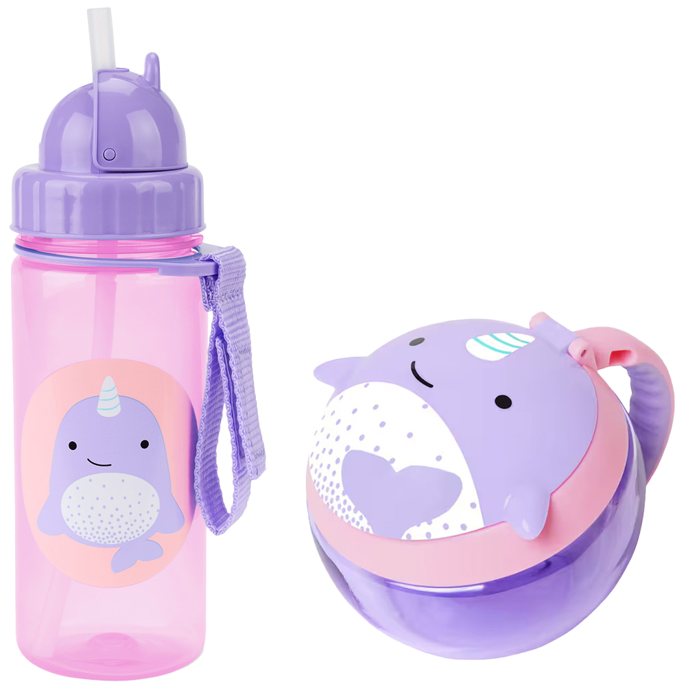 Perfect for toting munchies, this cute cup encourages independent snacking without the mess. The easy-grip handle is sized just right for little hands, and the snap top lid ensures food stays fresh. The flexible inside opening keeps snacks from spilling out - even if it's tipped over. With two lids there's less mess and mom's bag stays crumb-free! This child-sized, go-anywhere bottle has a flip-top lid so the flexible straw stays clean. A major milestone for toddler is when she is ready to move on from sippy cups. The Zoo Straw Bottle helps ease this transition by giving little ones a big-child cup with the protection of a flip-top lid. Dishwasher-safe; also comes with an extra straw.