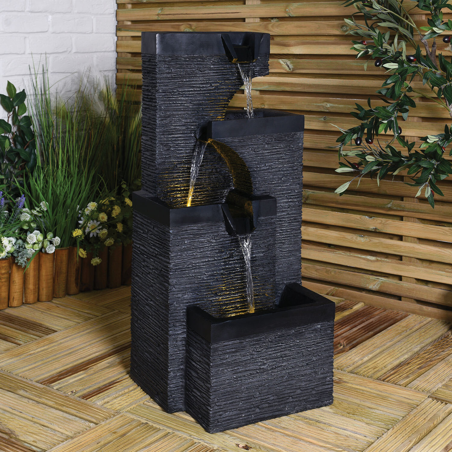 Enhance your outdoor space with the soothing sounds of water using this Slate Effect 3 Drop Fountain. Perfect for blending into your garden among plants or standing out as a centrepiece, this elegantly designed fountain brings a touch of tranquillity to any space. Crafted from durable materials, it’s built to endure various weather conditions, and its integrated LED light ensures it shines brightly both day and night.