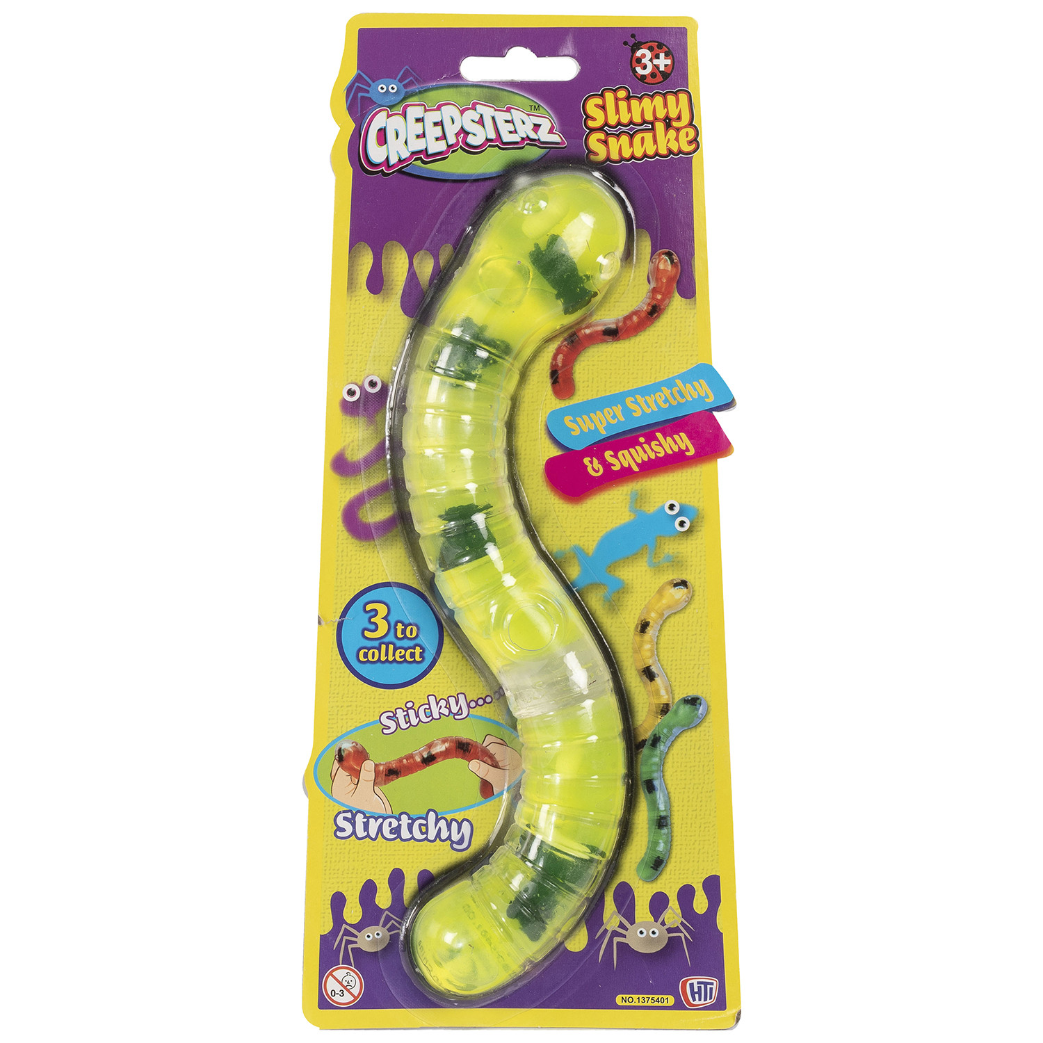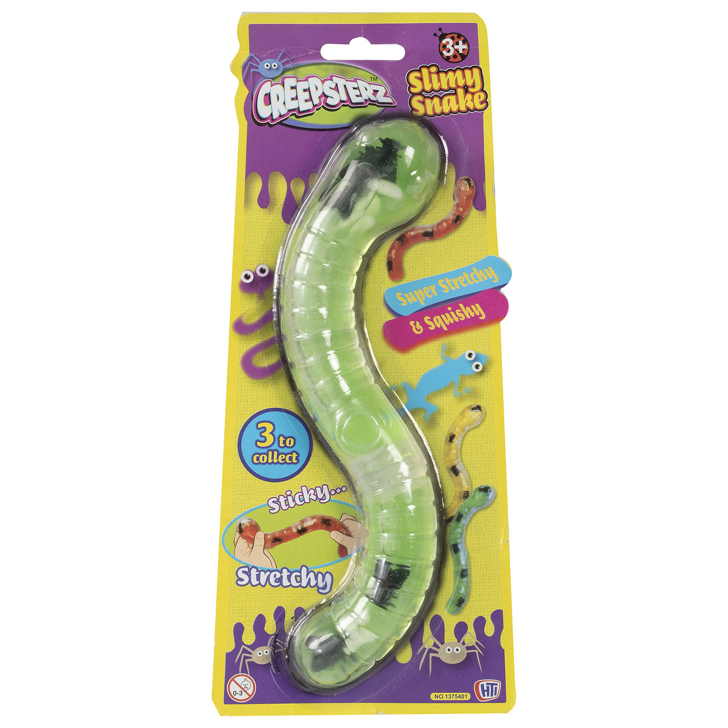 Super stretchy and squishy, there are 3 creepy Slimy Snakes to collect in 3 chilling colours. The semi-transparent snake is studded with his dinner of flies and is perfect for pulling, squeezing and throwing. This novelty toy is great for keeping children entertained and is ideal for children's party bags.
