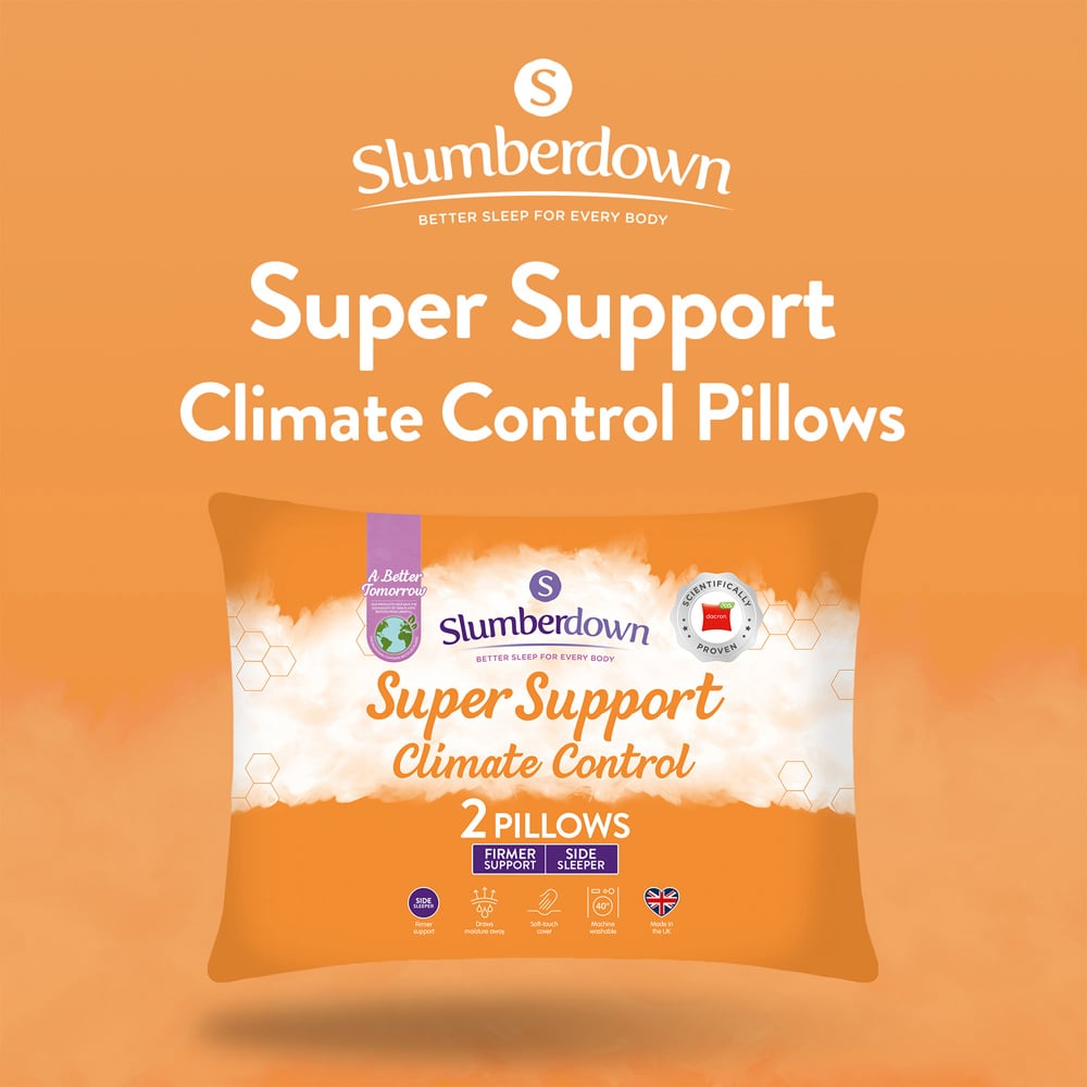 Slumberdown’s popular Climate Control pillow is now with a Super Support upgrade! For a comfortable, temperature-regulated night’s sleep, combined with the firmer support that side sleepers especially benefit from. Just like the original Slumberdown Climate Control pillow, this version contains a scientifically proven Dacron hollow-fibre fill. This specially developed filling has been formulated to carry excess heat and moisture away from the surface of the pillow – drawing it from your head and body so you keep at a regular temperature. The more heat you generate, the harder the filling will work to keep you cool. But if you’re already cool, the clever Dacron hollow-fibre filling won’t allow you to get too cold either. Having received a Super Support makeover, this Slumberdown Climate Control Super Support pillow offers optimum support, thanks to a unique core block for your head, neck and spine to rest at the right position and reduce everyday aches and pains.