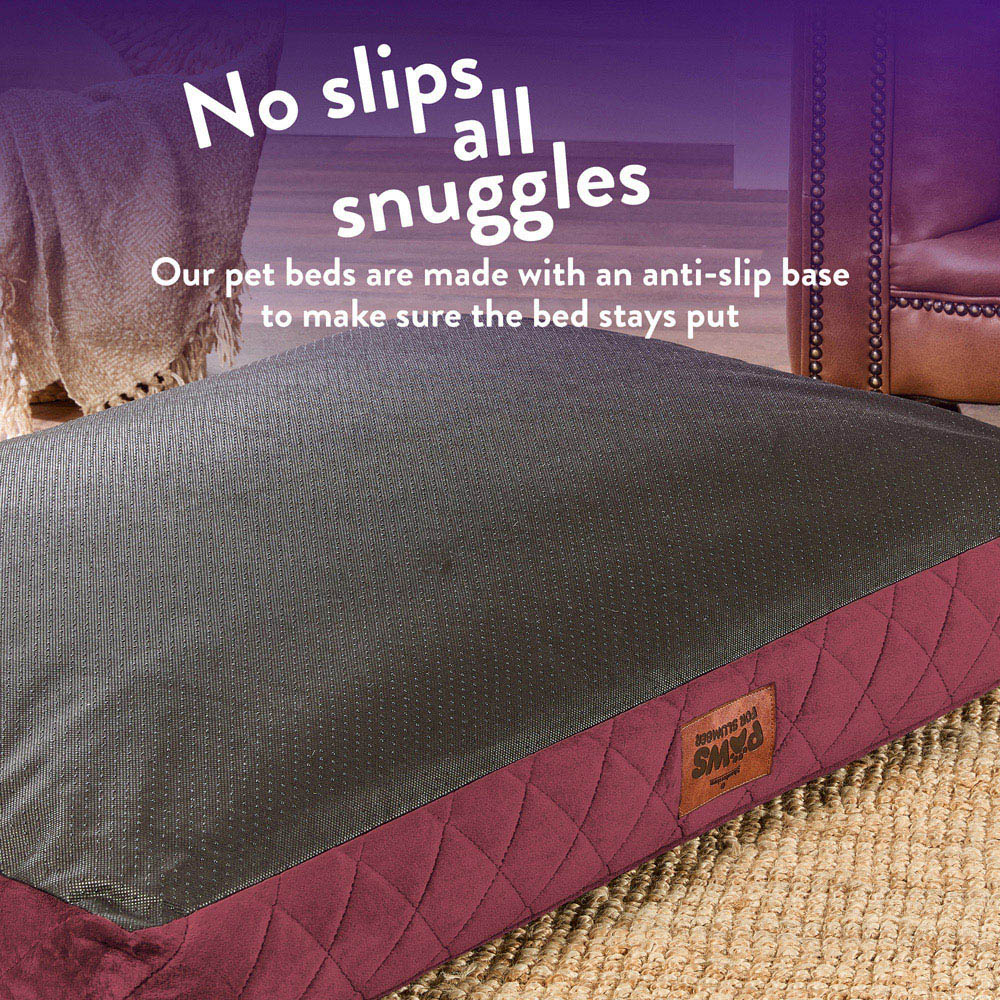 Give your pet the gift of luxury with the Slumberdown Extra Large Burgundy Padded Pet Bed. This pet bed is designed to accommodate pets of all shapes and sizes and is generously filled with springy hollow fibre to provide a comfortable resting place for your pet. The silky-soft microfleece cover has a velour feel, creating the perfect environment for your pet to snooze in cosy comfort. It includes a non-slip base to ensure it stays in place. The entire cover can be zipped off and washed in the washing machine for easy cleaning. Additionally, the pet bed is stylishly designed with quilted stitched sides, piped edging, and a lovely faux leather brand tag for those final luxurious touches.