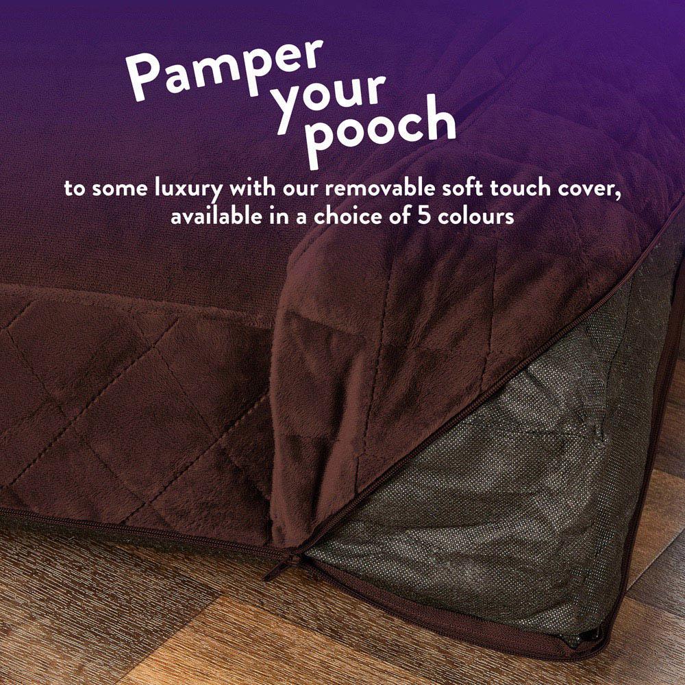 Give your pet the gift of luxury with the Slumberdown Extra Large Chocolate Brown Padded Pet Bed. This pet bed is designed to accommodate pets of all shapes and sizes and is generously filled with springy hollow fibre to provide a comfortable resting place for your pet. The silky-soft microfleece cover has a velour feel, creating the perfect environment for your pet to snooze in cosy comfort. It includes a non-slip base to ensure it stays in place. The entire cover can be zipped off and washed in the washing machine for easy cleaning. Additionally, the pet bed is stylishly designed with quilted stitched sides, piped edging, and a lovely faux leather brand tag for those final luxurious touches.