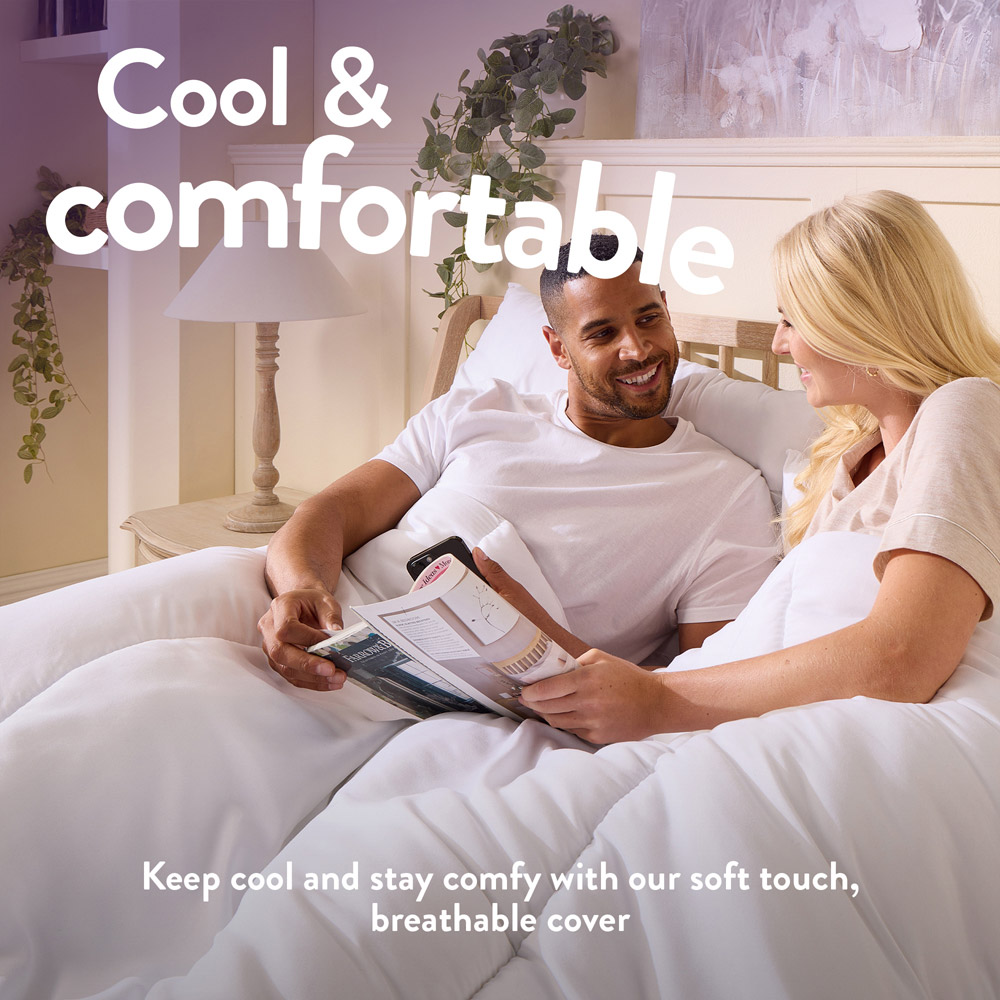 Experience ultimate comfort with climate control with this Slumberdown Climate Control 10.5Tog King Bed Duvet. It's crafted to control your temperature so you never experience too much heat or cold while sleeping. The Dacron hollow fibre fill keeps the duvet surface and body at a consistent temperature. The filling works harder to keep you cool as you produce more heat but it also keeps you from becoming too cold when you're already cool. It is ideal for year-round use because of its mid-weight 10.5Tog construction. You may rest easy knowing that no allergens with their hypoallergenic qualities will keep you up at night.