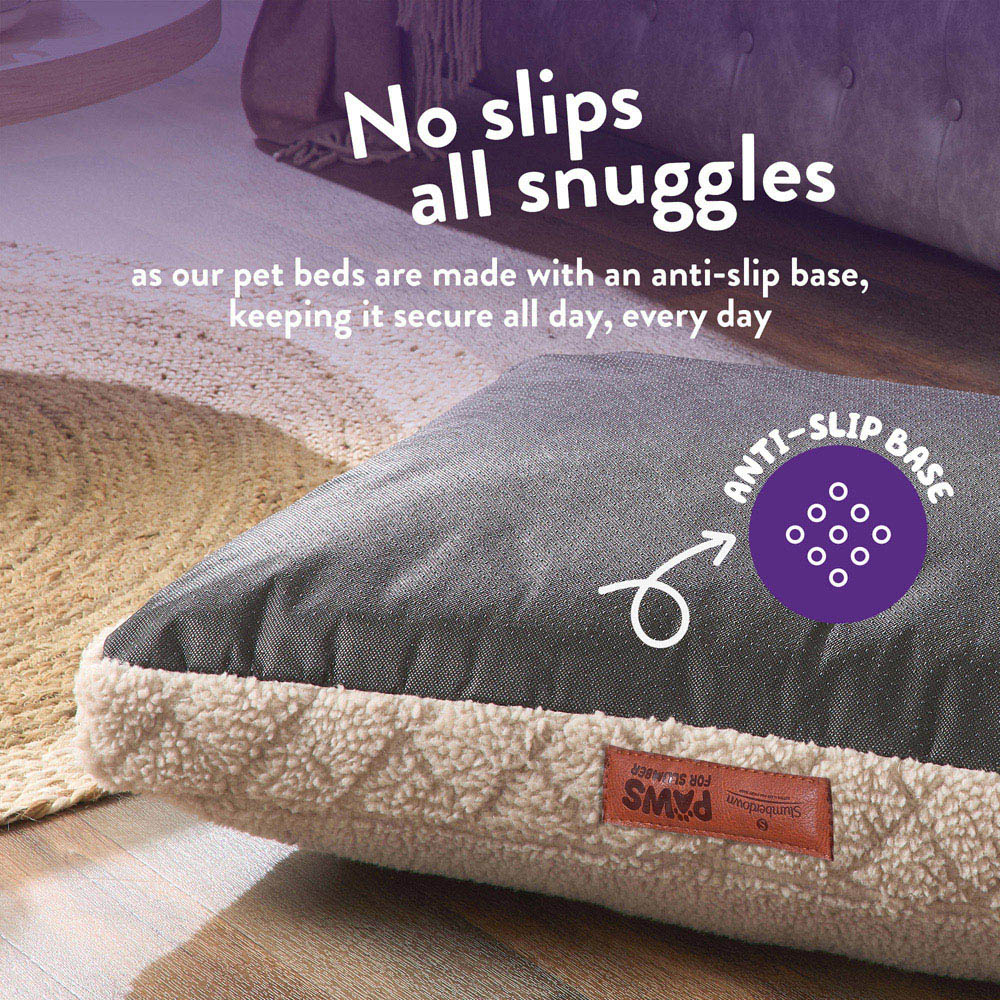 Ensure your pet enjoys a luxurious sleep with the Slumberdown Large Biscuit Sherpa Pet Bed. This pet bed offers soft to medium support for your furry friend to snuggle into. It comes in compact sizes and is easily portable, so you can have it with you wherever you go. The removable, machine-washable cover ensures easy maintenance. It also includes a non-slip base to ensure it stays in place. The soft-touch Sherpa fleece cover and supportive bouncy fibre filling provide the perfect amount of cosiness for your pet's best night's sleep, even after a rough day.