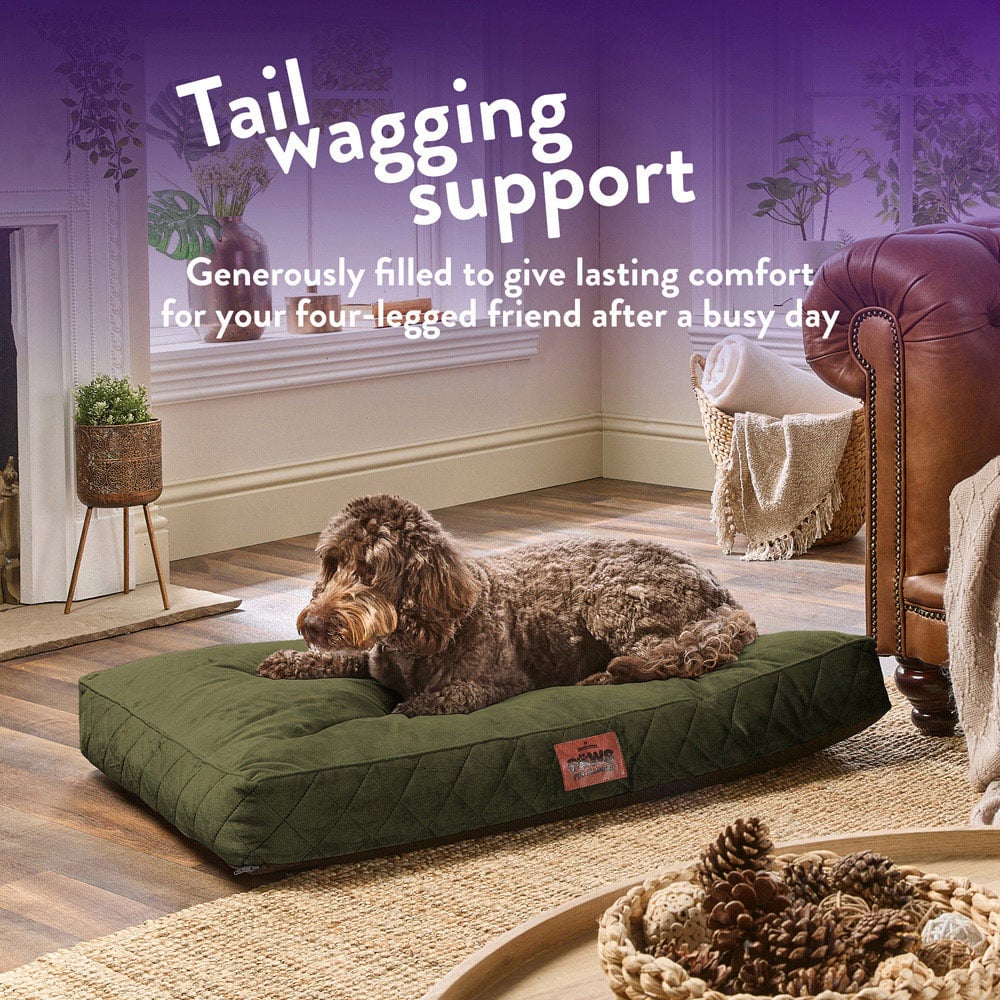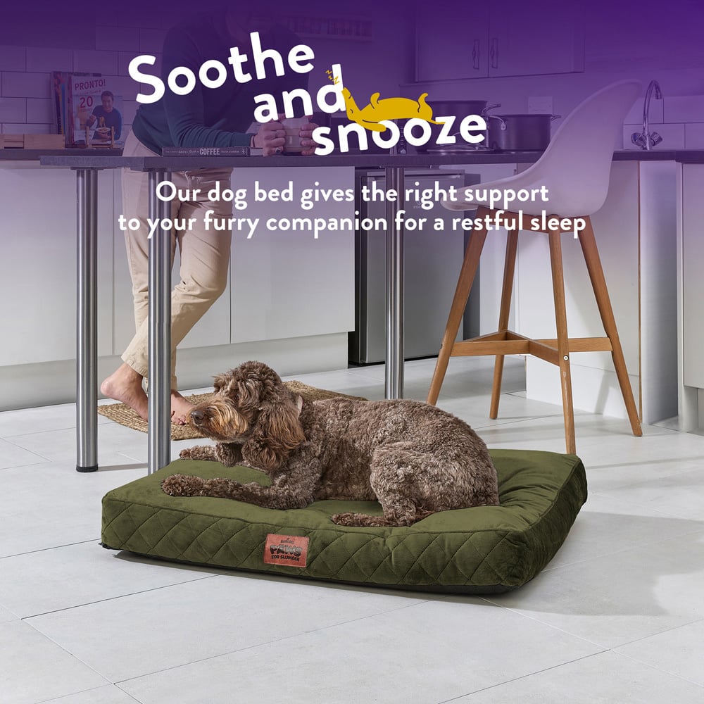 Give your pet the gift of luxury with the Slumberdown Large Green Padded Pet Bed. This pet bed is designed to accommodate pets of all shapes and sizes and is generously filled with springy hollow fibre to provide a comfortable resting place for your pet. The silky-soft microfleece cover has a velour feel, creating the perfect environment for your pet to snooze in cosy comfort. It includes a non-slip base to ensure it stays in place. The entire cover can be zipped off and washed in the washing machine for easy cleaning. Additionally, the pet bed is stylishly designed with quilted stitched sides, piped edging, and a lovely faux leather brand tag for those final luxurious touches.