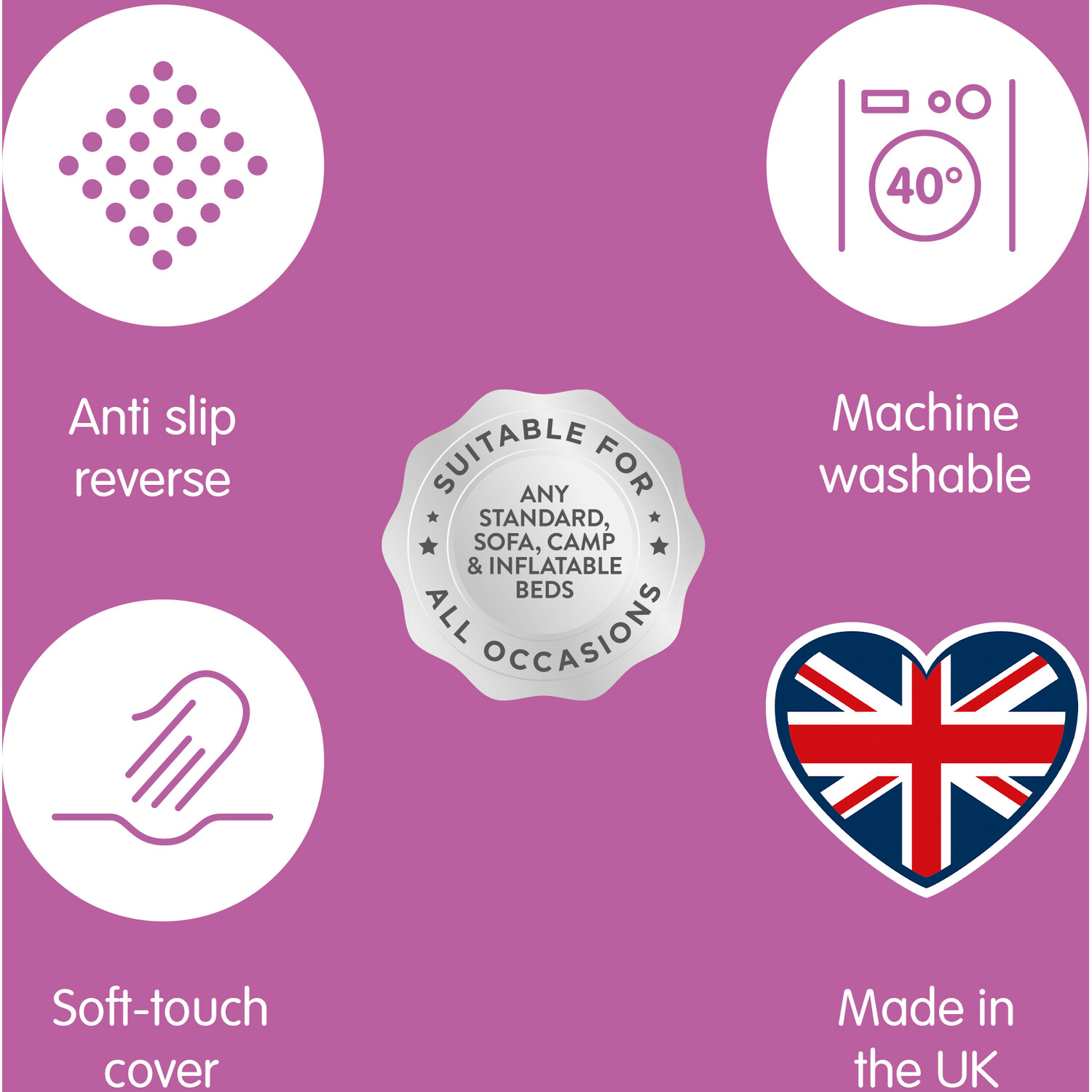 Transform your bed with the Slumberdown Sleep Soundly Topper. Its soft-touch cover and plush hollow fibre filling provide additional cushioning, helping to reduce tossing and turning for a deeper, more restful sleep. Perfect for reviving an old mattress or adding an extra layer of comfort, it is equipped with an anti-slip reverse that grips securely without the hassle of elasticated straps.