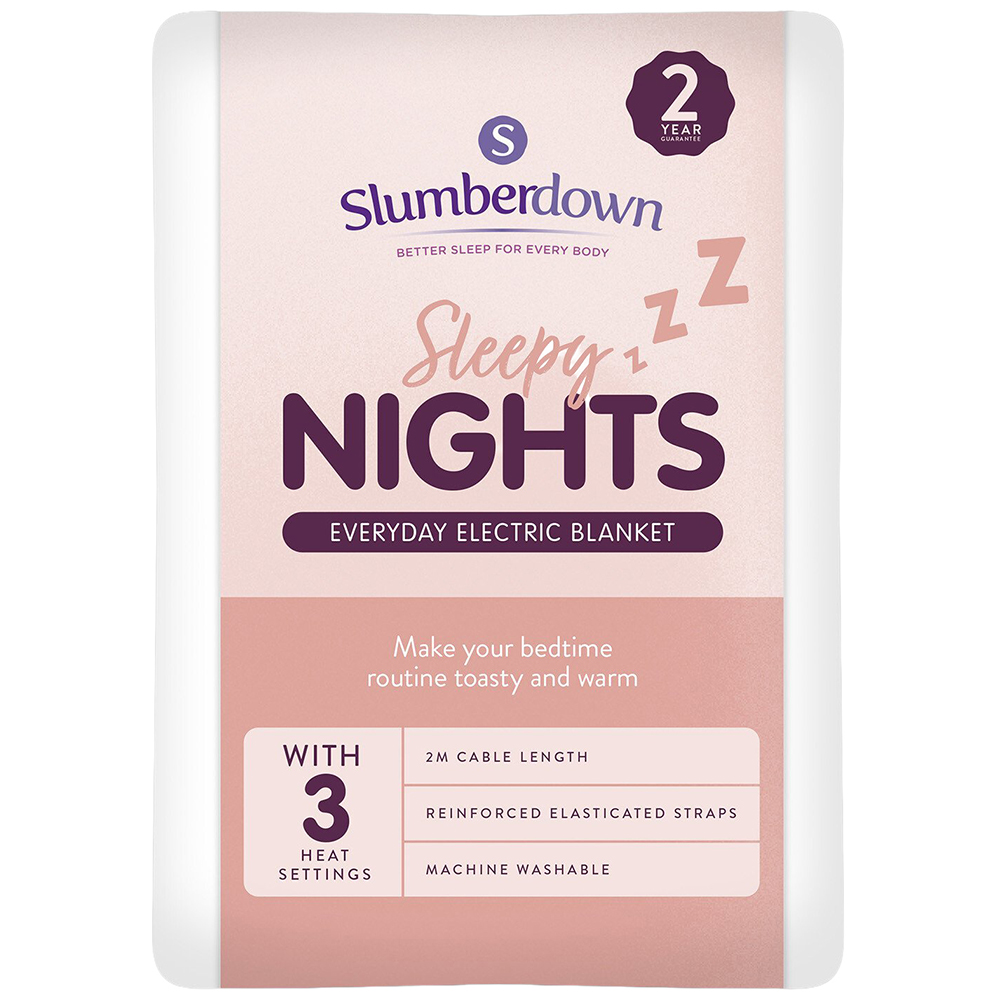 Envelop yourself in warm comfort with the Slumberdown Sleepy Nights Electric Blanket. It's designed with easy-fit straps to securely fit on your single mattress to a depth of 30cm. Featuring three adjustable heat settings, you can set the warmth to the perfect level using the handy controller. Machine washable, it's easy to clean and comes along with a storage bag for convenient storage. Unfurl this blanket on your bed and indulge in a warm and comforting sleep on those chilly nights.