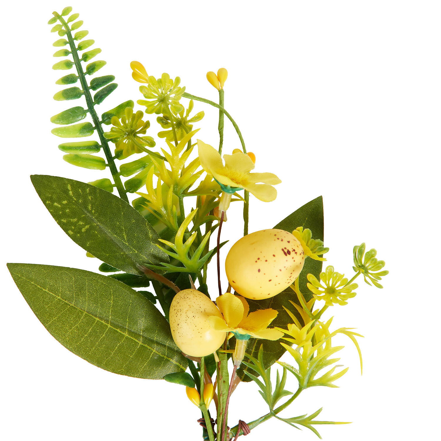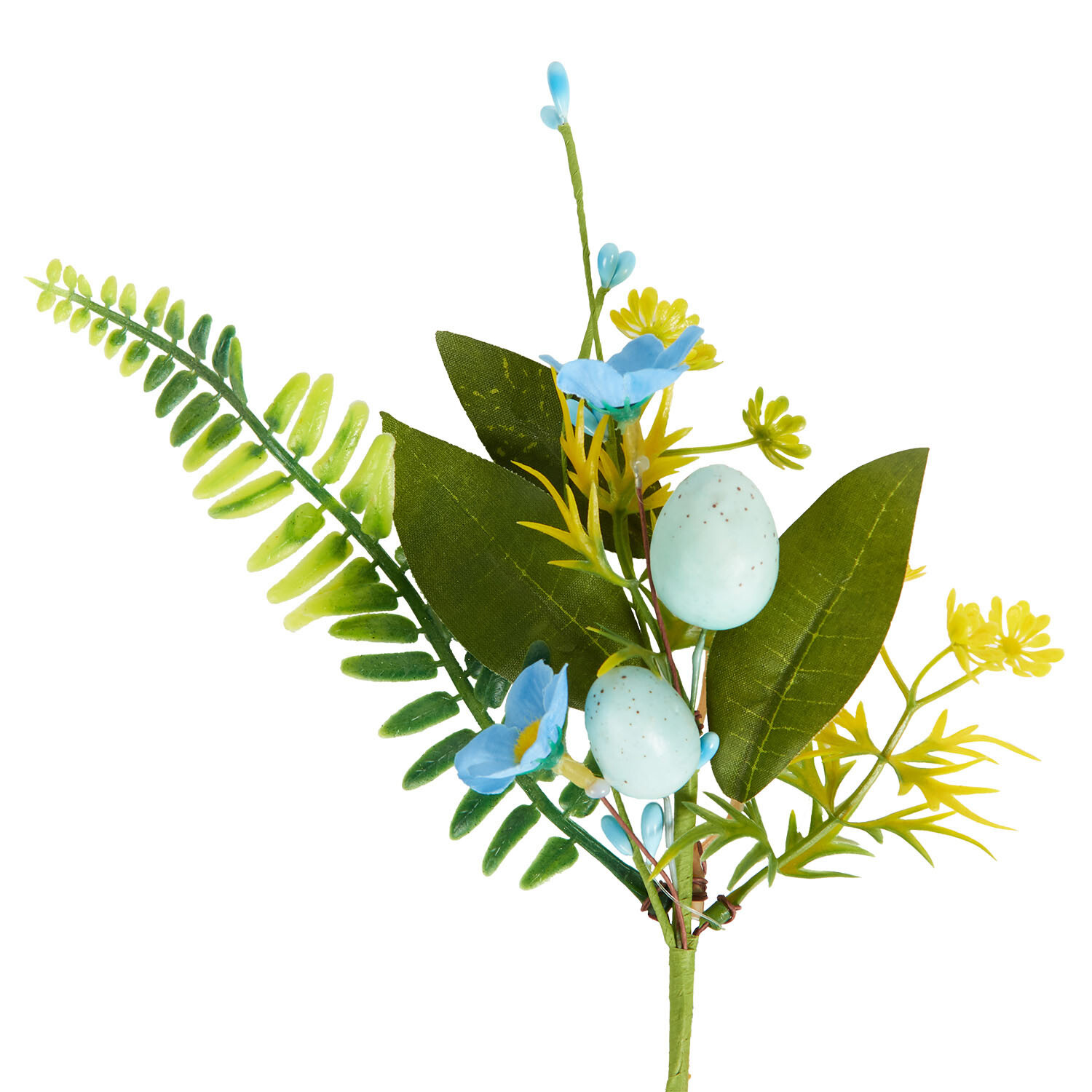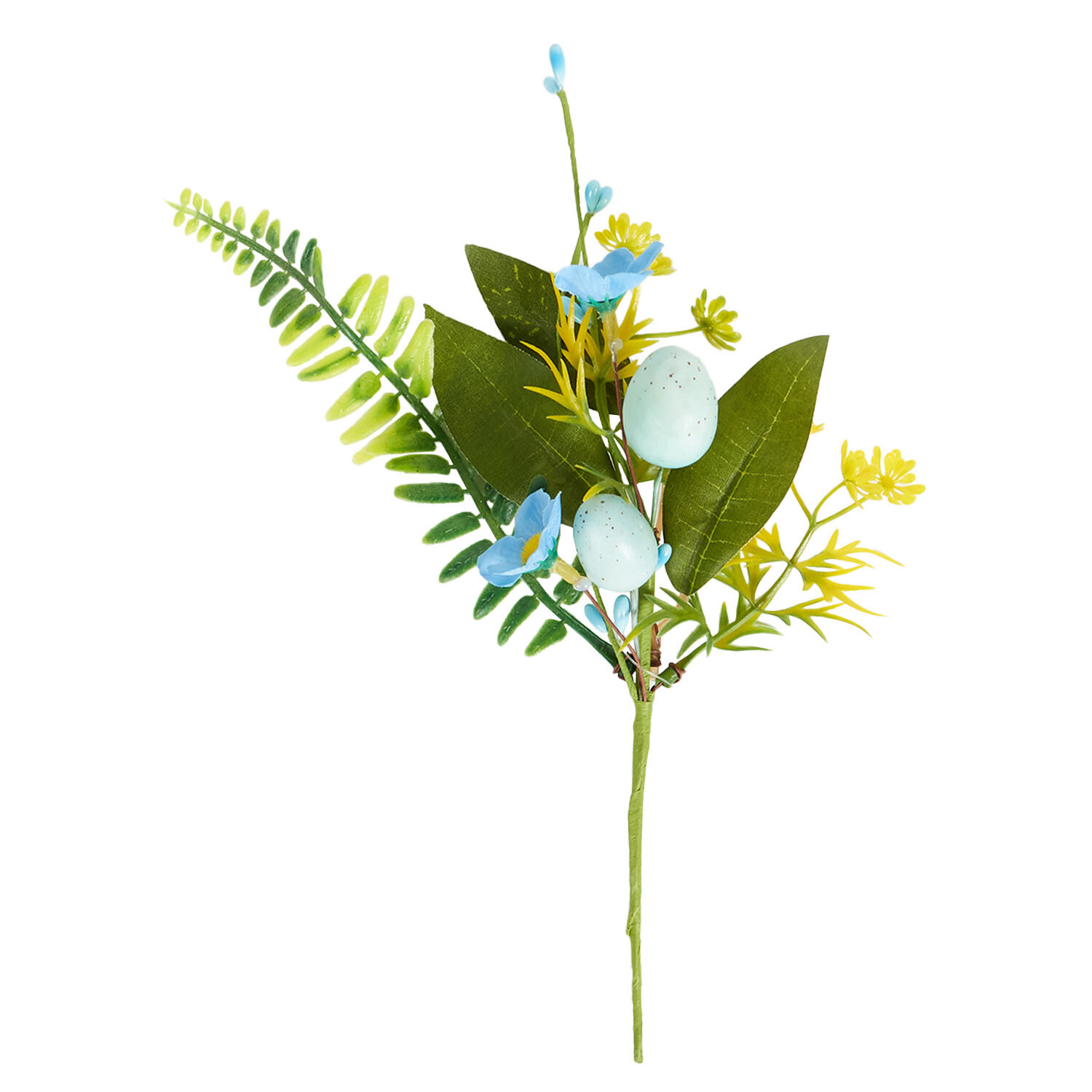 Adorn your home with the Small Easter Egg Pick. It features bright egg decorations that are nestled in the green foliage, making it perfect for spring decor. Available in an assortment of colours, it's sure to look lovely in any home.