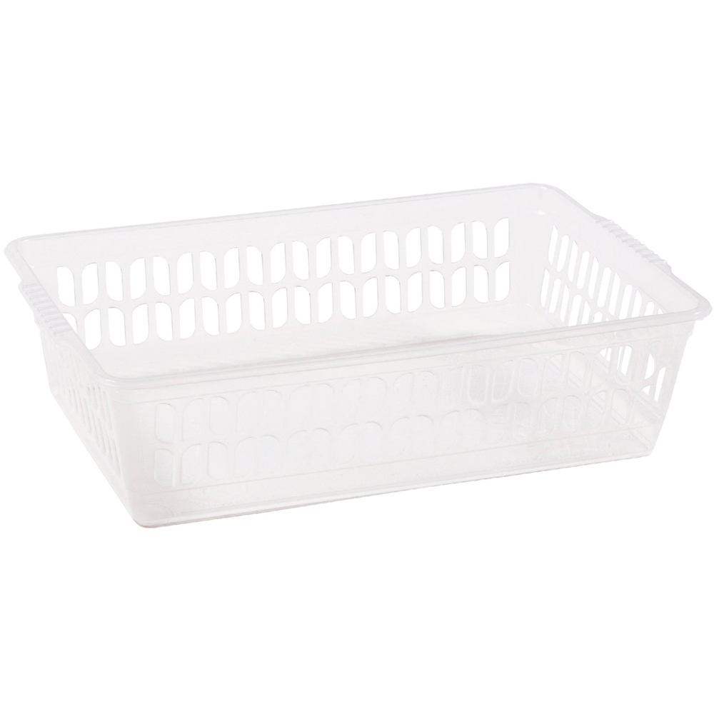 A great place to store miscellaneous items, this Single Clear Handy Basket keeps your home looking neat and tidy. Featuring three different sizes, these baskets are great for storing pens and pencils or even your dirty laundry. Featuring useful handles, you will be able to easily carry this around your home.