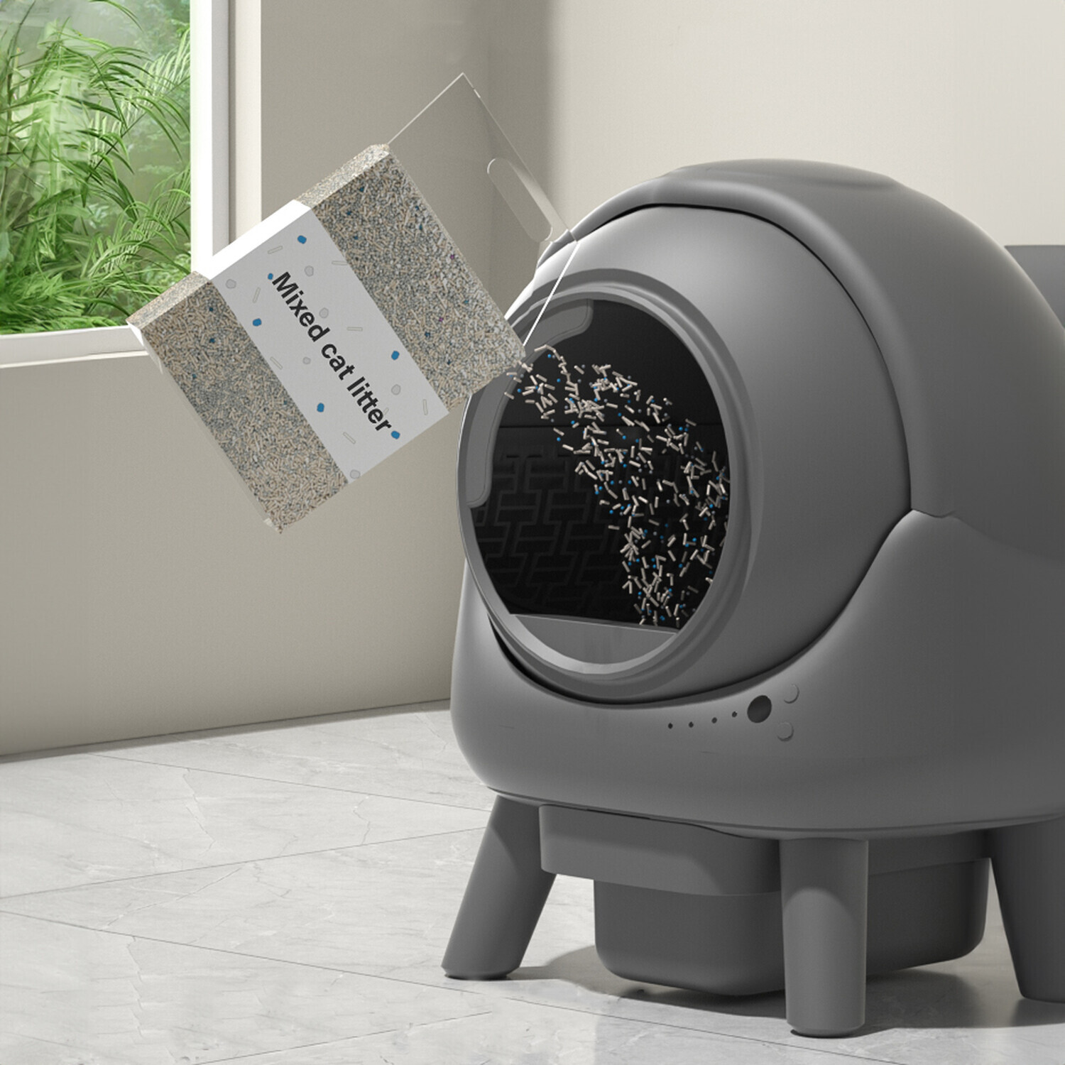 Upgrade your cat's bathroom routine with the Smart Cat Litter Box. Stay connected with app functionality that lets you monitor your cat's litter habits, track usage, and receive maintenance alerts straight to your phone. Safety sensors ensure cleaning cycles never activate while your cat is inside, and removable components make maintenance quick and easy. The sleek modern design and included litter liners add extra convenience for everyday use.