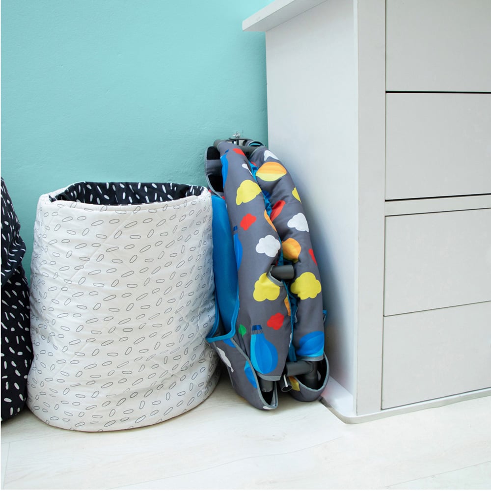 Get set for non-stop fun with the smarTrike Blue Kids 3 in 1 36 inch Trampoline. This folding indoor activity centre is designed to grow with your child from 10 months up to three years old. The first stage is a sensory ball pit, perfect for little ones to start exploring and playing early. The set includes 100 multicoloured balls that come with a ball storage bag, which also doubles up as the ball pit surround. As your child grows, the activity centre transforms into a two-stage trampoline. In the second stage, the trampoline features a removable safety bar to help children develop their balance and confidence as they start bouncing. When they are ready for more independent play, the safety bar can be removed for stage three, allowing them to master jumping on their own. The trampoline is designed with a durable mat and elastic bands instead of springs, ensuring safe bouncing without any risk. It also has a compact three-way folding system, making it easy to store and perfect for saving space. Plus, no assembly is required, so your child can start playing right away. This amazing activity centre has a maximum user capacity of 22kg. With dimensions of 69.5 x 91.5 x 91.5cm, it is ideal for indoor use.