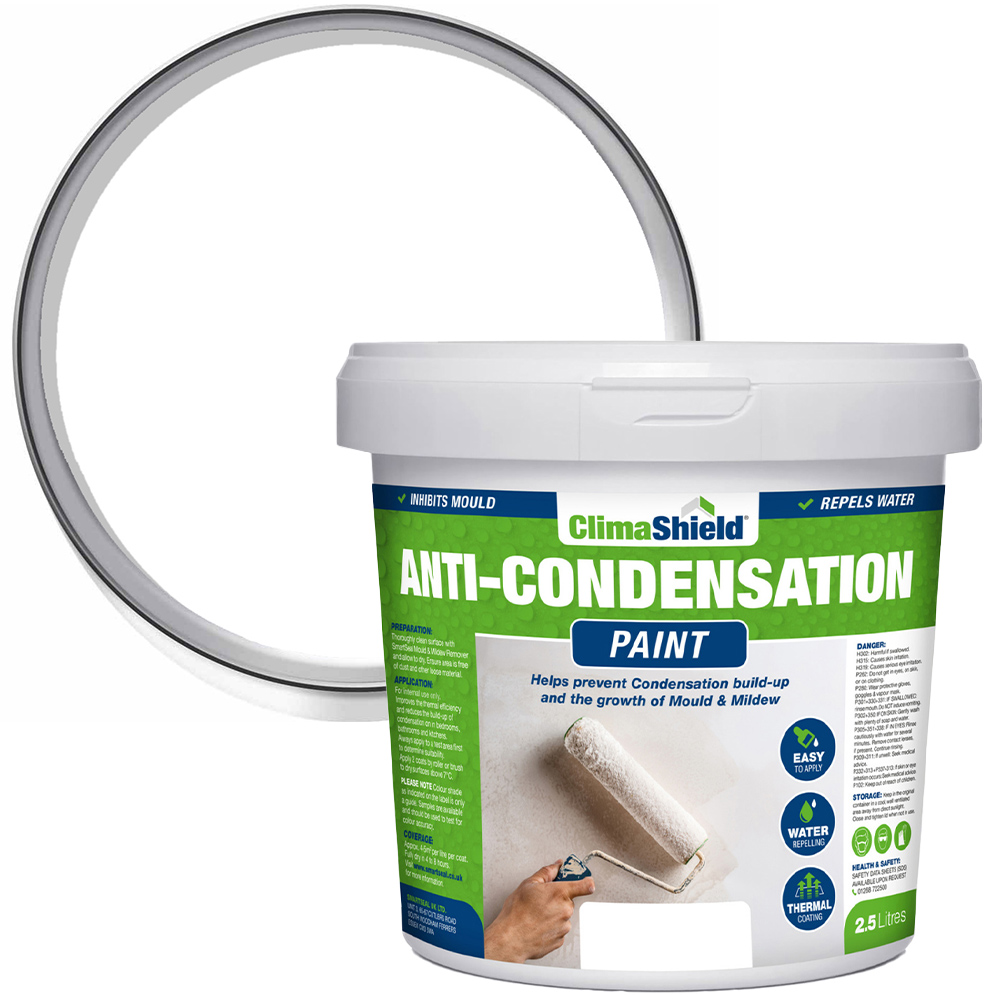 Upgrade your walls in a classy way with this 2.5L Anti-Condensation Paint by SmartSeal. This brilliant white-coloured paint delivers a beautiful finish and acts as a potent anti-mould barrier, safeguarding your home against unwanted growth. It can also significantly reduce condensation levels up to a staggering 95% and will keep your living spaces fresh and free from harmful moisture build-up. Its anti-mould properties eliminate all the harmful allergens and contaminants, ensuring fresher, cleaner air in your bathrooms and bedrooms. This paint is suitable for use in bathrooms, kitchens and bedrooms, where it can help prevent the growth of black spot mould. It is also ideal for use in properties with low insulation levels or on cold external-facing walls.