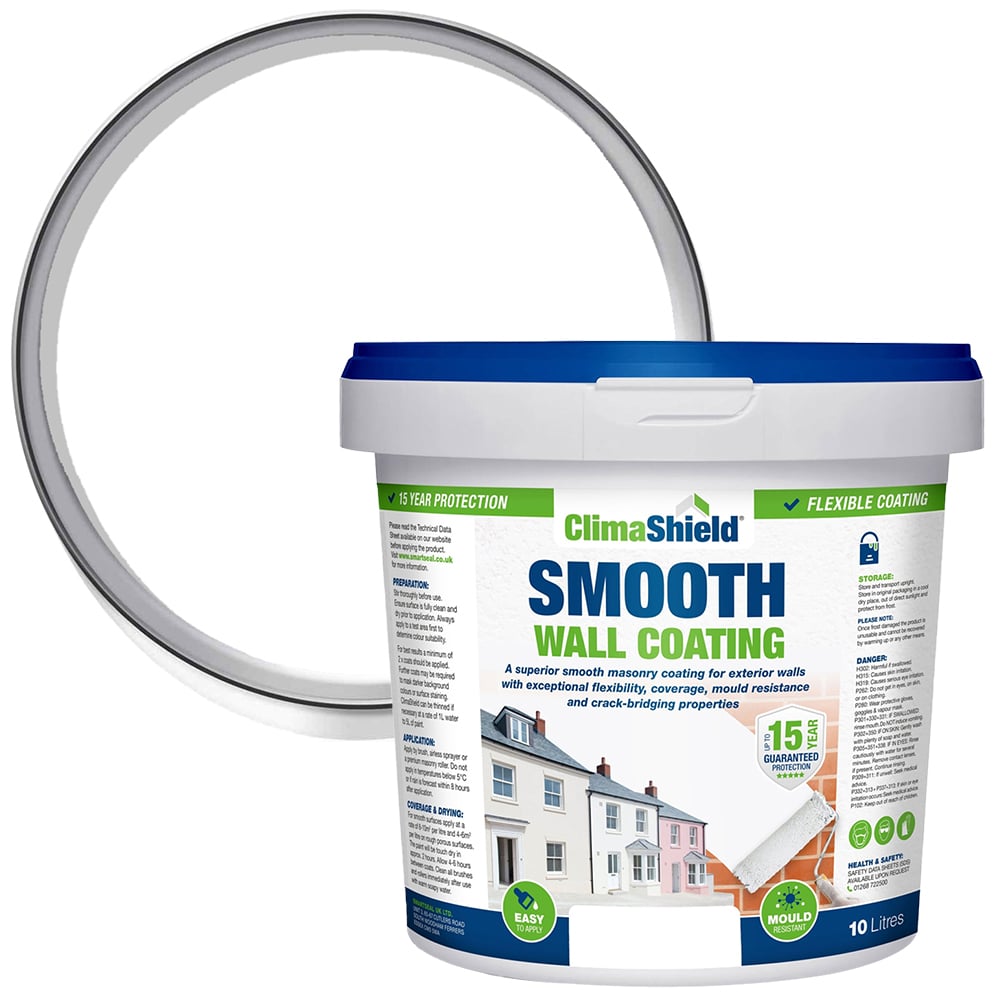 The superior grade smooth wall paint is specially formulated to offer enhanced elasticity compared to other, cheaper wall paints, available in most DIY stores. This 'flexing' feature gives it exceptional crack-bridging properties during application. Once fully cured, after around 24-48 hours, it will enable the waterproof exterior paint to flex and allow it to move with the expansion and contraction of the surface without cracking. This important feature offers superior performance throughout the year, enabling it to withstand any seasonal extremes of temperature. Durability: The lab-tested formulation contains materials which are designed to give the waterproof wall paint long-term durability even in areas subject to extreme weather conditions. Breathability: The wall paint once fully cured, provides a microporous finish. This prevents water ingress, whilst allowing the painted substrate to 'breathe' the same time and allow moisture to pass through from inside to the outside and evaporate. This helps to prevent damp caused by the build up of moisture inside a property.