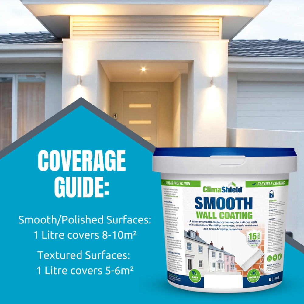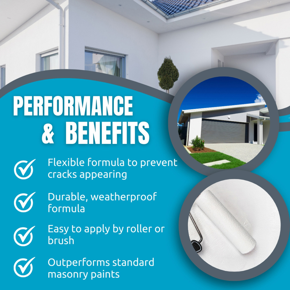 The superior grade smooth wall paint is specially formulated to offer enhanced elasticity compared to other, cheaper wall paints, available in most DIY stores. This 'flexing' feature gives it exceptional crack-bridging properties during application. Once fully cured, after around 24-48 hours, it will enable the waterproof exterior paint to flex and allow it to move with the expansion and contraction of the surface without cracking. This important feature offers superior performance throughout the year, enabling it to withstand any seasonal extremes of temperature. Durability: The lab-tested formulation contains materials which are designed to give the waterproof wall paint long-term durability even in areas subject to extreme weather conditions. Breathability: The wall paint once fully cured, provides a microporous finish. This prevents water ingress, whilst allowing the painted substrate to 'breathe' the same time and allow moisture to pass through from inside to the outside and evaporate. This helps to prevent damp caused by the build up of moisture inside a property.