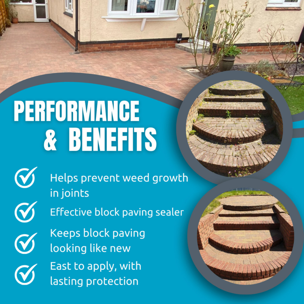 Upgrade your outdoor oasis effortlessly with the SmartSeal Eco Friendly Block Paving Sealer. Unlike other sealers, it's solvent-free, so it emits no unpleasant fumes or odours. This sand hardener and block paving sealer is easy to apply and effectively inhibits the regrowth of weeds and moss, protecting your block paving and keeping it looking like new for years to come. It creates a durable barrier that guards against oil spills and stains, making it ideal for driveways and patios. For best results, apply it at a ratio that depends on the width of the joints, allowing it to seep 20mm into the joints. This advanced block paving sealer is formulated to the highest BS5750/ISO9001 standard. Protect your investment and enjoy a beautiful, weed-free driveway or patio. Application guidelines: For newly laid block paving, apply as soon as possible. For older block paving, make sure that the surface area is completely cleaned and bone-dry. Pour sealer onto the surface in sections and use a squeegee to spread the sealer and soak it into the sand. Apply the second coat within one to two hours of the first coat. Quantity: 25L.