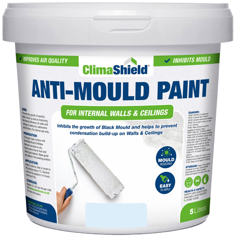 Upgrade your home walls in a classy way with this 5L Anti-Mould Paint by SmartSeal. This frosted blue-coloured paint offers a matt finish once applied and is specially formulated to help prevent the growth of dangerous mould, mildew and algae within the home. The active fungicide within the anti-mould paint helps to stop any mould or mildew from germinating and spreading, which can be very harmful to health, especially to anyone with breathing difficulties. This paint has a solvent-free low VOC formulation which also helps to improve air quality. It can also be used as an effective mould-resistant paint or membrane on floors, walls and ceilings in bedrooms, bathrooms, kitchens & and basements.