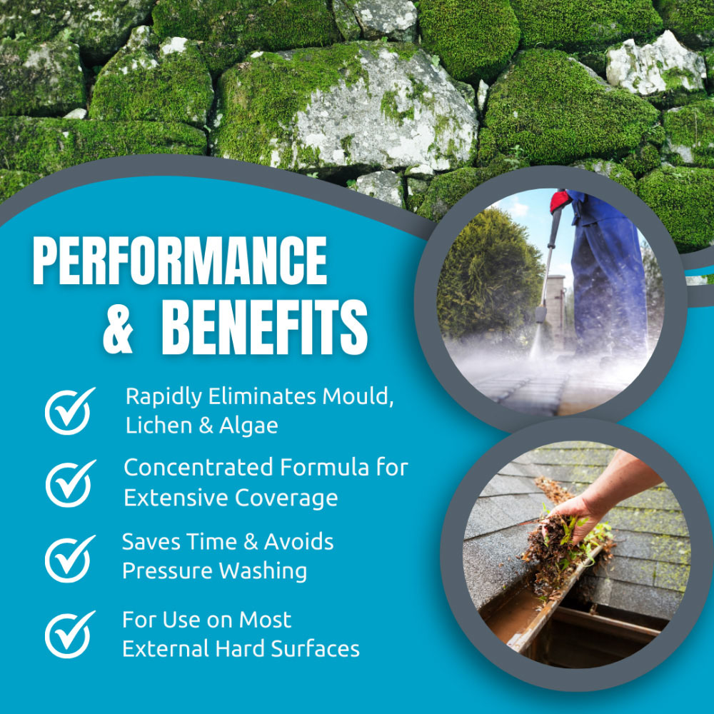 Immerse yourself in a crystal clear oasis with the SmartSeal Green Clear Green Growth and Algae Remover. This highly effective microbiological biocide is capable of quickly eliminating most types of green organic growth on external hard surfaces. The formulation is easy to apply and suitable for controlling and removing organic growth, algae, mould, and various types of lichen that typically appear on driveways, patios, roofs, walls, and paths. You can reapply it at any time to prevent the reappearance of these species of organic growth, keeping external hard surfaces clean at all times. It is perfect for the DIY market and can be easily applied with a watering can or sprayer. 5L of Green Clear can cover an impressive 100-125m2. You can dilute it 1:5 with water for effective results. Quantity: 5L. Pack of three.