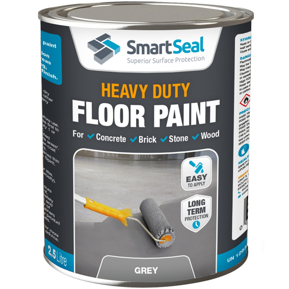 Smartseal Heavy Duty Floor Paint is formulated using a special blend of high quality thermo-acrylic and polyurethane resins. This creates a hard wearing, heavy duty elastomeric coating or paint for lasting protection to many high-trafficked areas in the residential and commercial sector. Often used as a garage floor paint, the Heavy Duty Floor Paint provides a tough, durable, long lasting protective coating that also has an anti-slip finish. However, although the grey floor paint will help, it is not possible to guarantee a totally non-slip surface after application. Please note: the Heavy Duty Grey Floor Paint should not be used to paint Latex screeds as they are normally covered with tiles, wooden flooring or carpet tiles and should not be painted.