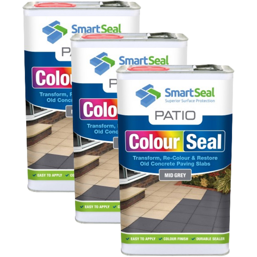 Keep your patio looking at its best with the SmartSeal Mid Grey Patio ColourSeal. The superior quality patio sealer is the perfect solution for homeowners who want to transform, re-colour, and restore their old concrete paving slabs. With its easy-to-use application, you don't need to be a DIY expert to use it. The results are truly transformative and will enhance the beauty of your outdoor space in no time. The patio sealant is suitable for most surfaces and is designed to be hassle-free, ensuring a seamless and straightforward process. It saves you time and effort during the application, with no need for complicated preparations or additional mixing. With its professional-level results, you can achieve a stunning finish to your patio, making it the envy of your neighbours. And if you're worried about the slip resistance of the paving, the sealant has got you covered. With the option to add anti-slip granules to the last coat, you can enjoy a safe and secure outdoor space for years to come. Coverage: First coat: 4m² per litre (dependent on the surface). Second coat: Approximately 5m135. Quantity: 5L. Pack of three.