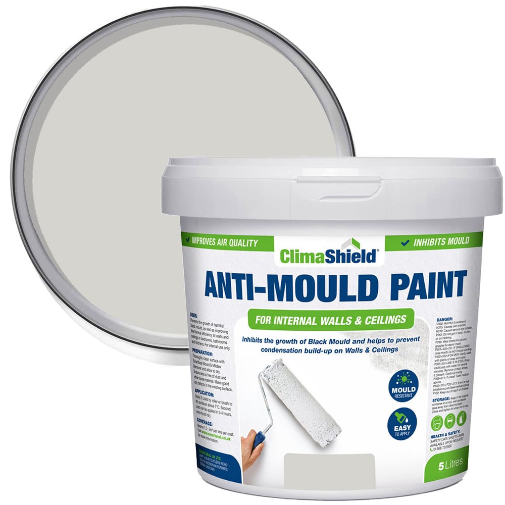 Upgrade your home walls in a classy way with this 5L Anti-Mould Paint by SmartSeal. This pale slate dark grey-coloured paint offers a matt finish once applied and is specially formulated to help prevent the growth of dangerous mould, mildew and algae within the home. The active fungicide within the anti-mould paint helps to stop any mould or mildew from germinating and spreading, which can be very harmful to health, especially to anyone with breathing difficulties. This paint has a solvent-free low VOC formulation which also helps to improve air quality. It can also be used as an effective mould-resistant paint or membrane on floors, walls and ceilings in bedrooms, bathrooms, kitchens & and basements.