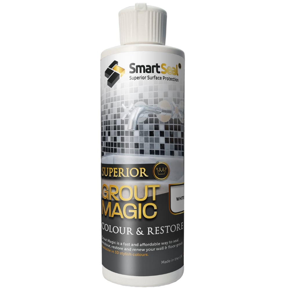 Unveil a fresh, vibrant look for your tiled spaces with this SmartSeal White Grout Magic, an effective grout dye that restores or changes the colour of tile grout. Another benefit is that it acts as a sealer that penetrates deeply into the grout. It will dramatically enhance the appearance of any wall or floor tile. Once applied and fully cured, it will enhance the grout by giving it a long-lasting protective seal. It will also inhibit the growth of mould and mildew on the tile grout. Quantity: 237ml.