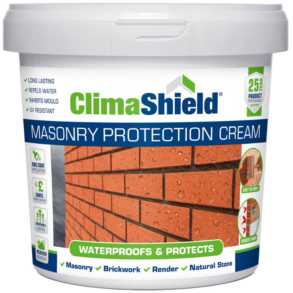 Give your masonry and brickwork surfaces much-needed, long-lasting protection with this 3L Climashield Masonry Protection Cream by SmartSeal. This white-coloured cream can prevent water from penetrating the pores of brickwork & masonry surfaces. It has a coverage ratio of approximately 5m² per litre, which is recommended on standard brickwork. Also, ensure that a test is carried out on the area before full application. For best results, one heavy application of Climashield Masonry Cream on standard brickwork at 5m² per litre is recommended. On dense, less absorbent brickwork or render, the coverage of the brick waterproofer can be increased by up to 10m² per litre. It can also be applied with a roller or paintbrush without affecting the appearance of the surface and gives you 25 years of long-lasting waterproofing solution.
