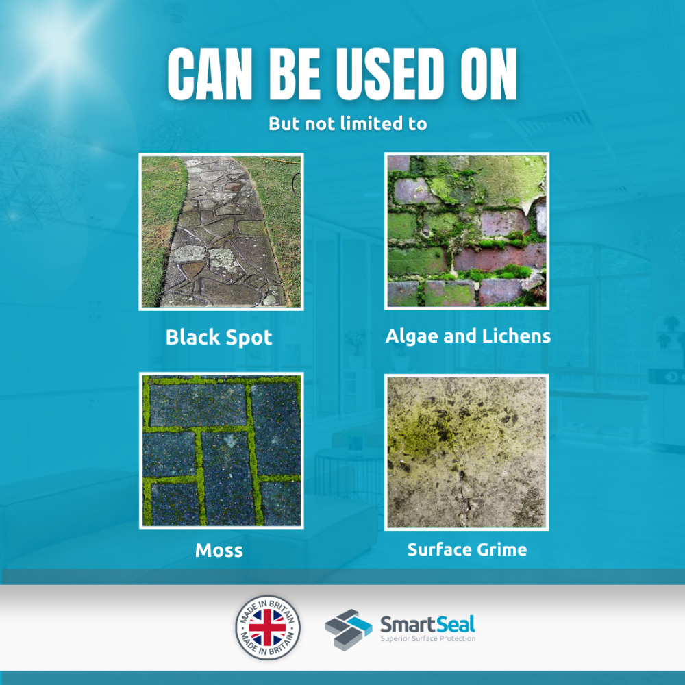 Restore your home's charm with this SmartSeal Xtreme Patio Cleaner. This fast-acting, high-performance patio cleaning product contains four powerful active ingredients. It offers a simple way to keep any patio clean without the need for pressure washing. The patio must remain wet throughout the 60 minutes, as the product becomes inactive once dry. Most ingrained organic matter and grime will be removed after one application, but sometimes, a second application may be required to remove all black and white spot algae. Diluted 1:1, 5L of the product can cover up to 40m². It is a proven, tested, and trusted driveway cleaner that can be applied using a sprayer or watering can. Instructions for use: 1. Sweep away loose debris and areas with a heavy build-up of dirt and grime. 2. Wet surface area with water. 3. Dilute the product at a ratio of 1:1. If removing the black spot, don't dilute. 4. Apply product to the surface using a watering can or sprayer. 5. Make sure that the surface area doesn't dry out before rinsing off. 6. Leave on the surface area for up to 60 minutes. 7. Rinse the area with water. Quantity: 25L.