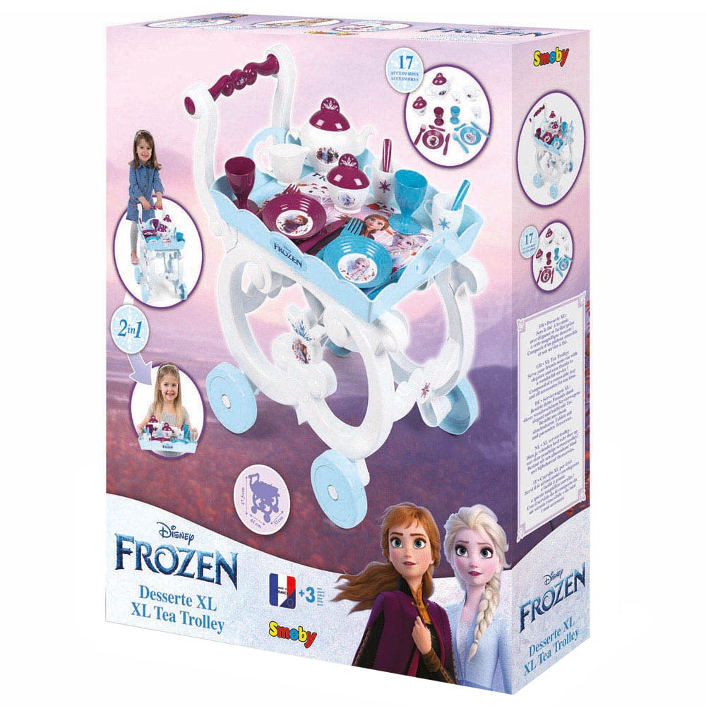 The Extra Large Frozen Tea Trolley from Smoby brings you a charming Frozen-themed tea trolley, now bigger than ever! Featuring multiple teatime accessories and moving wheels, your little one can enjoy serving tea and treats for their friends and family wherever they fancy. They can explore playing both server and customer roles in a tea shop or perhaps host a princess tea party in their castle! It comes equipped with everything they need to have a fun tea party with friends. Sip tea from the snowflake teacups, enjoy cake using the Anna and Elsa plates or serve snacks to mum or dad with the handy removable tray. Watch as children bring Anna, Elsa, and Olaf to life with their very own teatime trolley, the ideal gift for Frozen fans. Built with durable plastic materials for a long-lasting playtime accessory that can withstand endless adventures, the playset is a versatile play trolley for children over the age of three. Wherever the day takes them, this high-quality toy is sure to delight boys and girls everywhere.