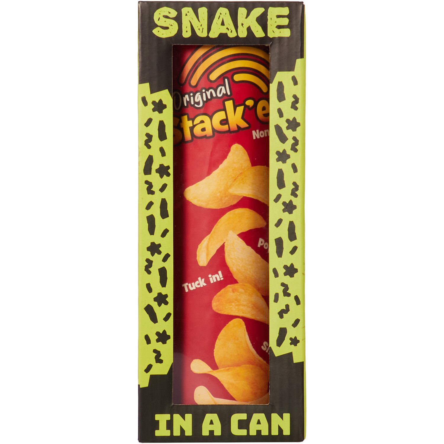 Prank your family and friends with this Snake in a Can. Designed to look like a packet of crisps, this detailed can comes with a fun snake inside that will burst forth when your unsuspecting family member or friends tries to take a tasty crisp.