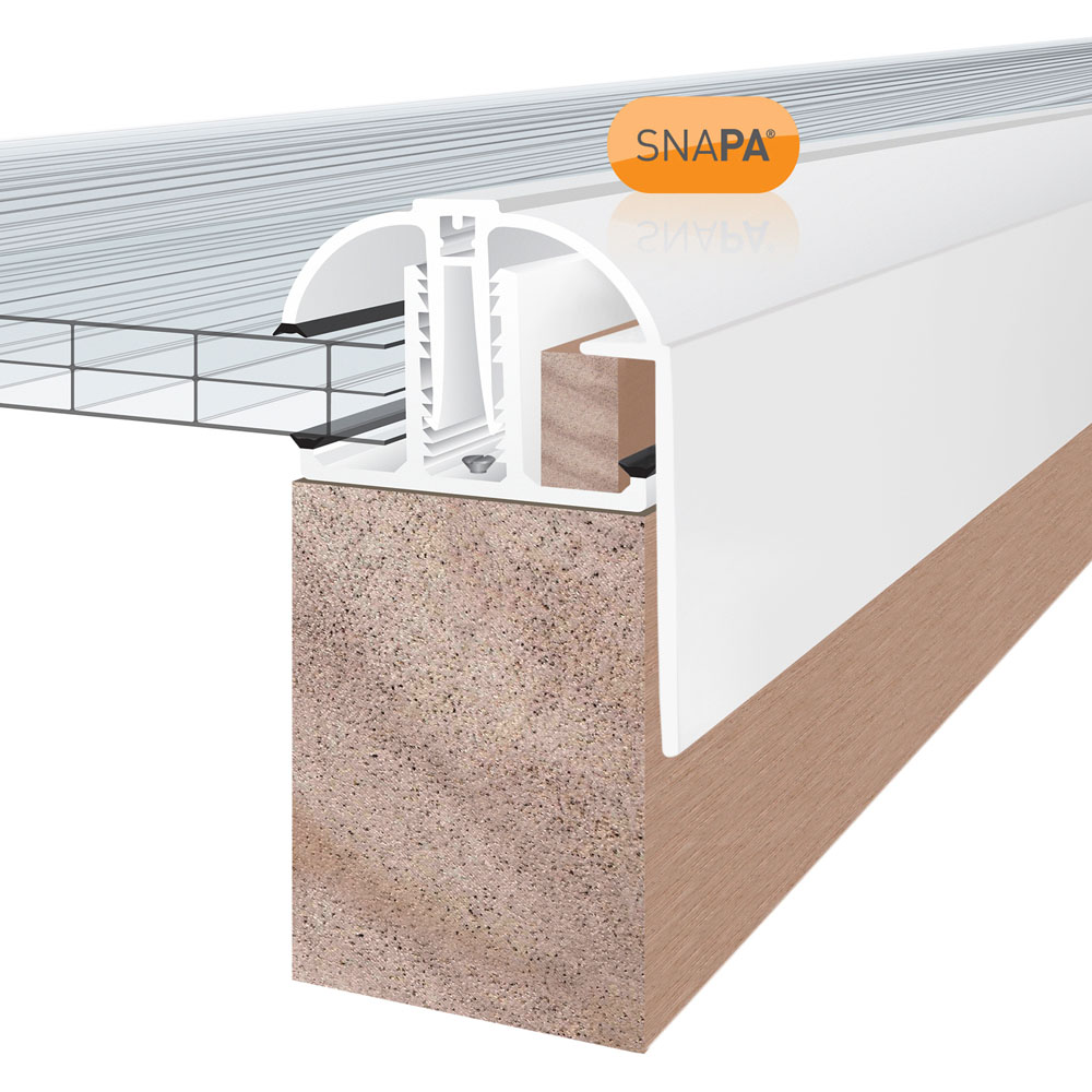 Add a perfect glazing finish to a gable with this 2.5m gable bar in white from Snapa. Snapa Gable Bar is extruded as a great budget option for finishing Axiome Polycarbonate sheets on the final rafter on any Axiome Glazing Structure. Snapa Gable Bars work with a simple snap-fix connection offering fast installation, great for a wide range of DIY projects, including carports, lean to's and decking covers. Snapa Gable Bars are excellently manufactured and designed to work with 10mm, 16mm, 25mm, 32mm and 35mm Axiome Polycarbonate and with significant wall thickness to provide high strength and rigidity.
