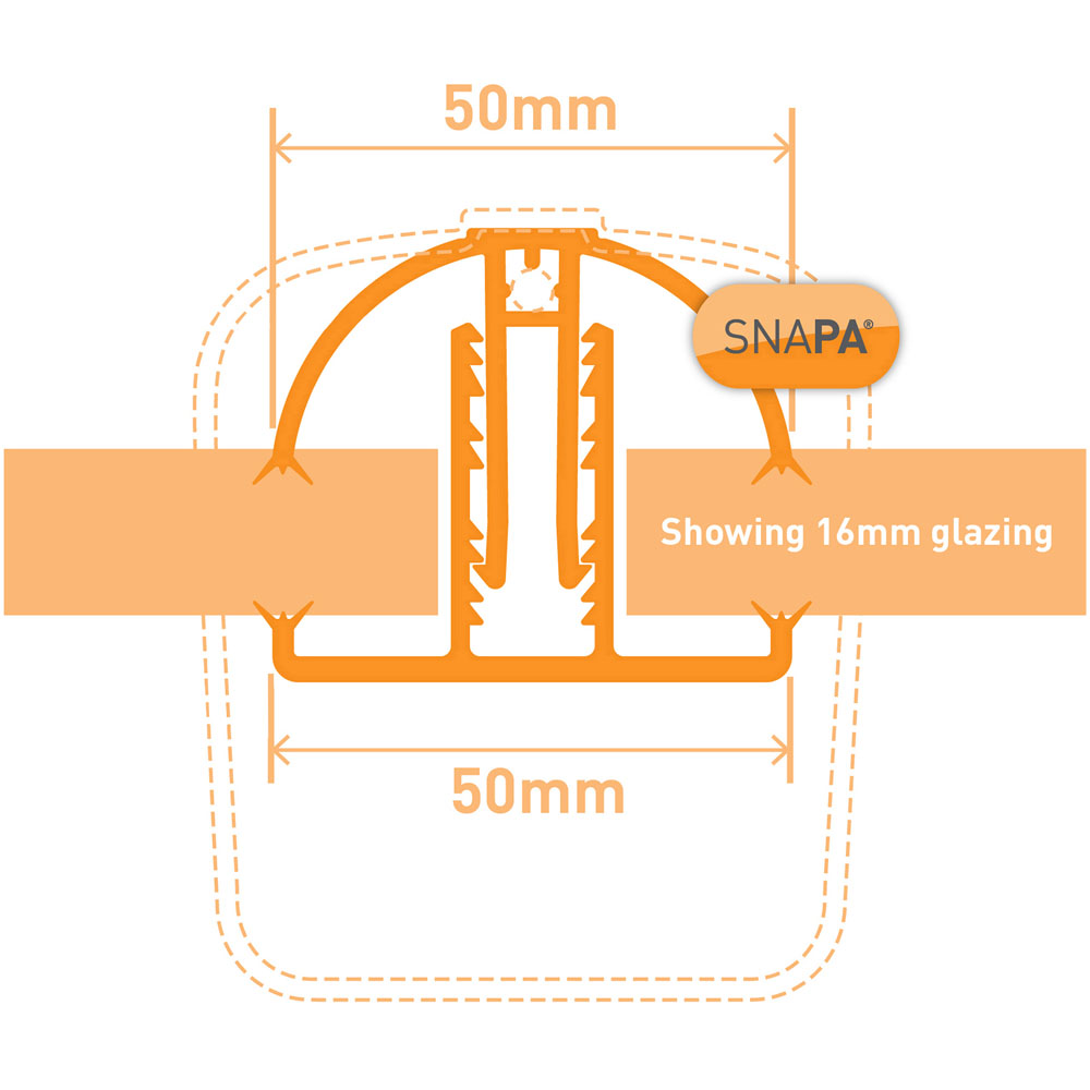 Snapa Glazing Bars provide a simple rafter-top glazing bar solution with a PVC snap-fix cap. Snapa bars are ideal for fixing Axiome polycarbonate multiwall to timber rafters or other structures. Snapa glazing bars are suitable for use with 10mm, 16mm and 25mm Axiome sheets. For a higher quality glazing bar that can use with glass and Axiome polycarbonate, search for the Alukap-XR 60mm glazing bar.