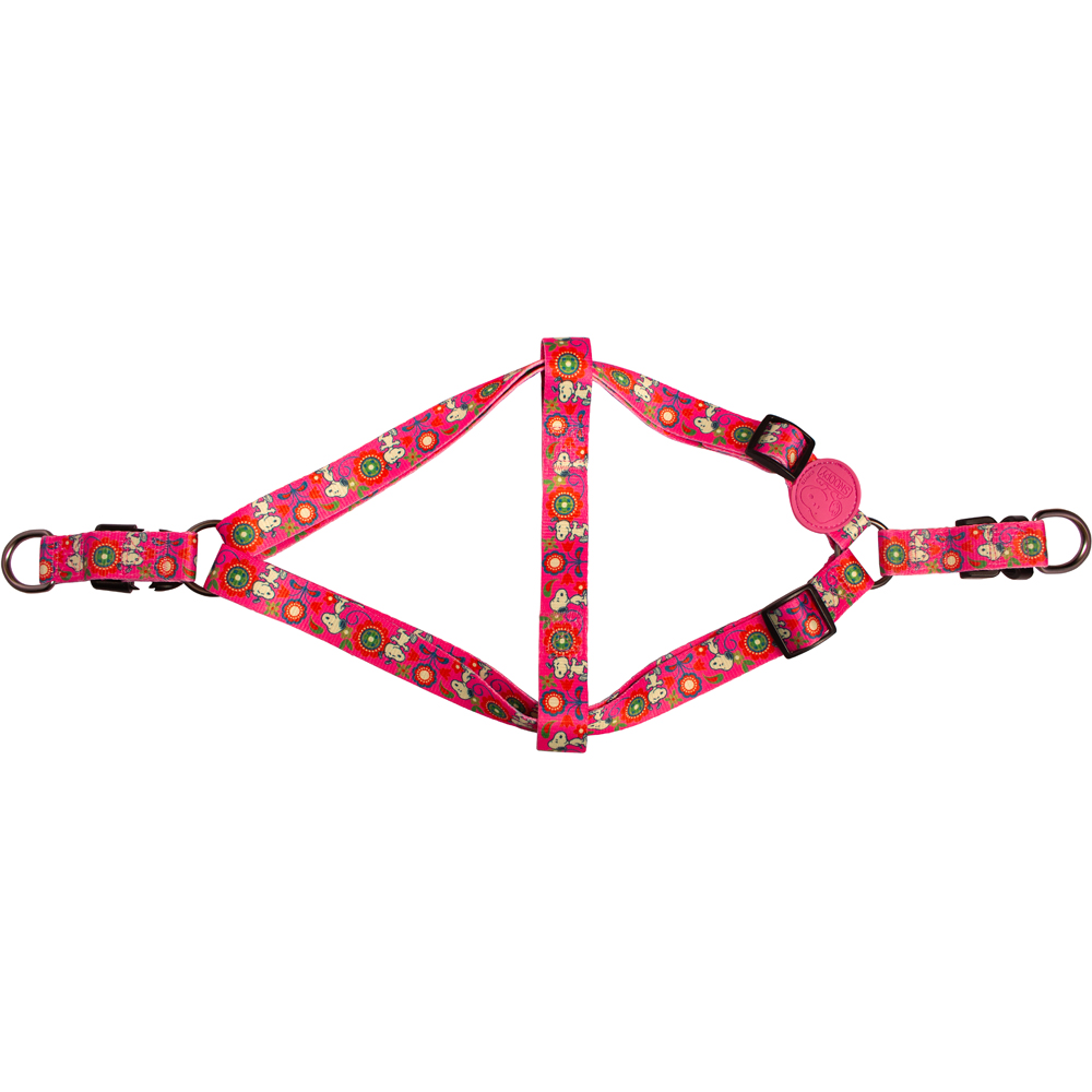 Accessorise your pet today with Snoopy Flower Dog Harness. The Training Harness is made of strong tetoron polyester and comes with a super strength buckle and 2 D rings for double the protection when attaching your leash. Fully adjustable.