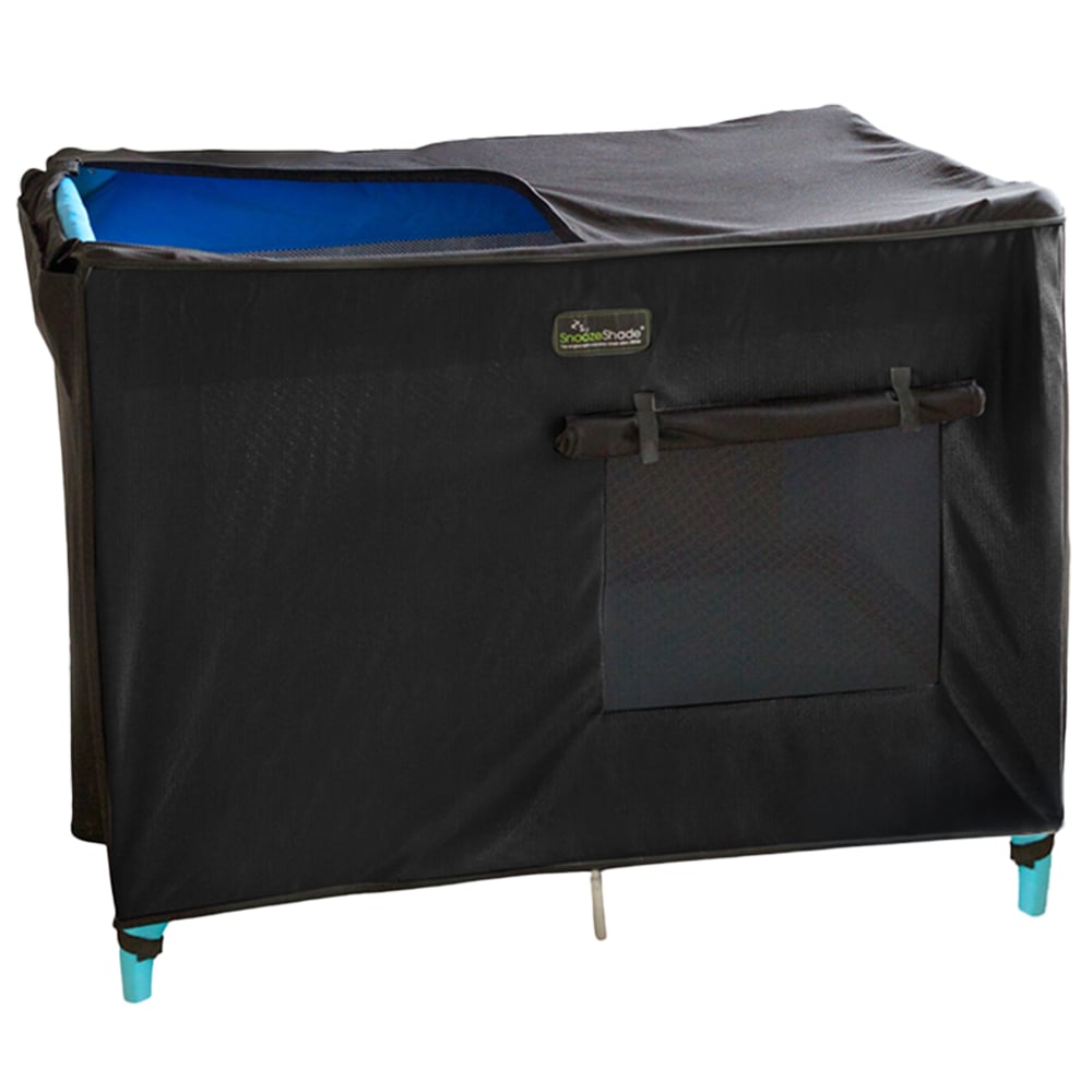 Create a comfortable environment for your little one with this SnoozeShade Travel Cot Sun Shade. This cover is a portable sleep solution that creates a dark and distraction-free sleep environment for your little ones anywhere. It can block up to 94% of light while blurring any visual stimuli that may keep your little ones awake, so you can still have a light on. This shade also comes with two side panels that can be raised or lowered as needed. The top panel features a large opening that can be closed or left open, providing a shaded area for your baby to sleep. Moreover, there's an integrated pocket where you can safely store the top panel when it's not in use.