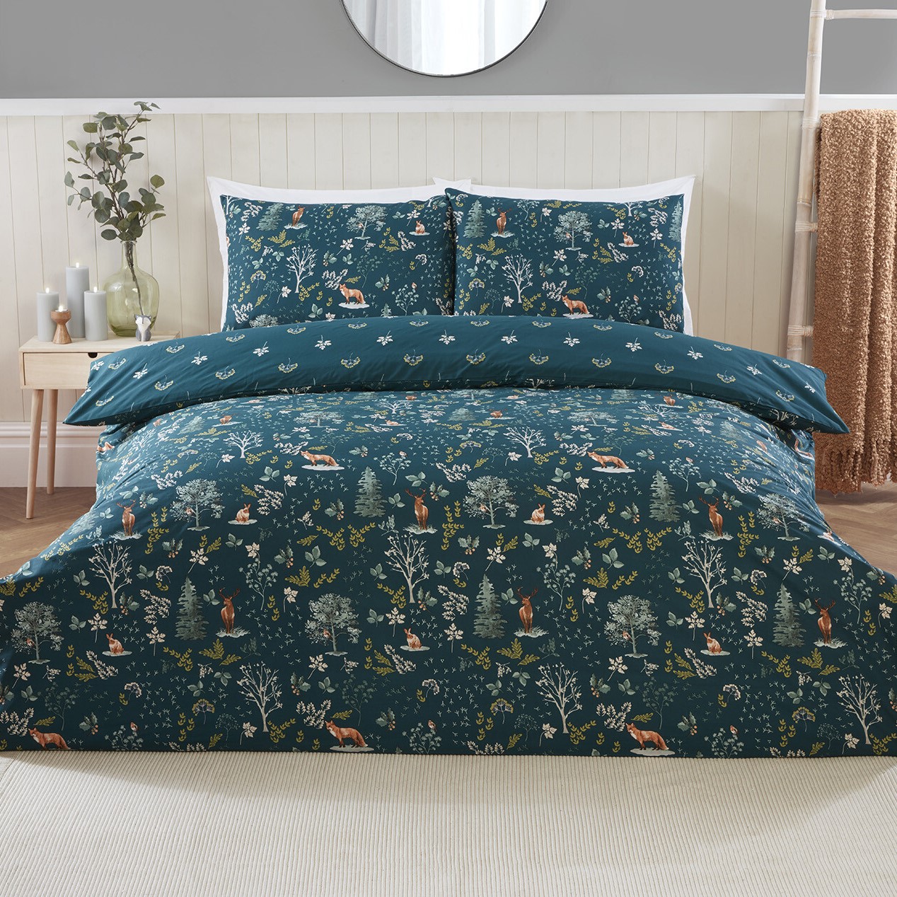 Boasting rich colour and enchanting festivity, this Snowy Forest Duvet Cover and Pillowcase Set is a wonderful addition to your bedroom this winter. The reversible design offers two patterns to choose from, providing two looks in one gorgeous set. A great way to add some seasonal charm to your home, it's made from 100% cotton for ultimate comfort.