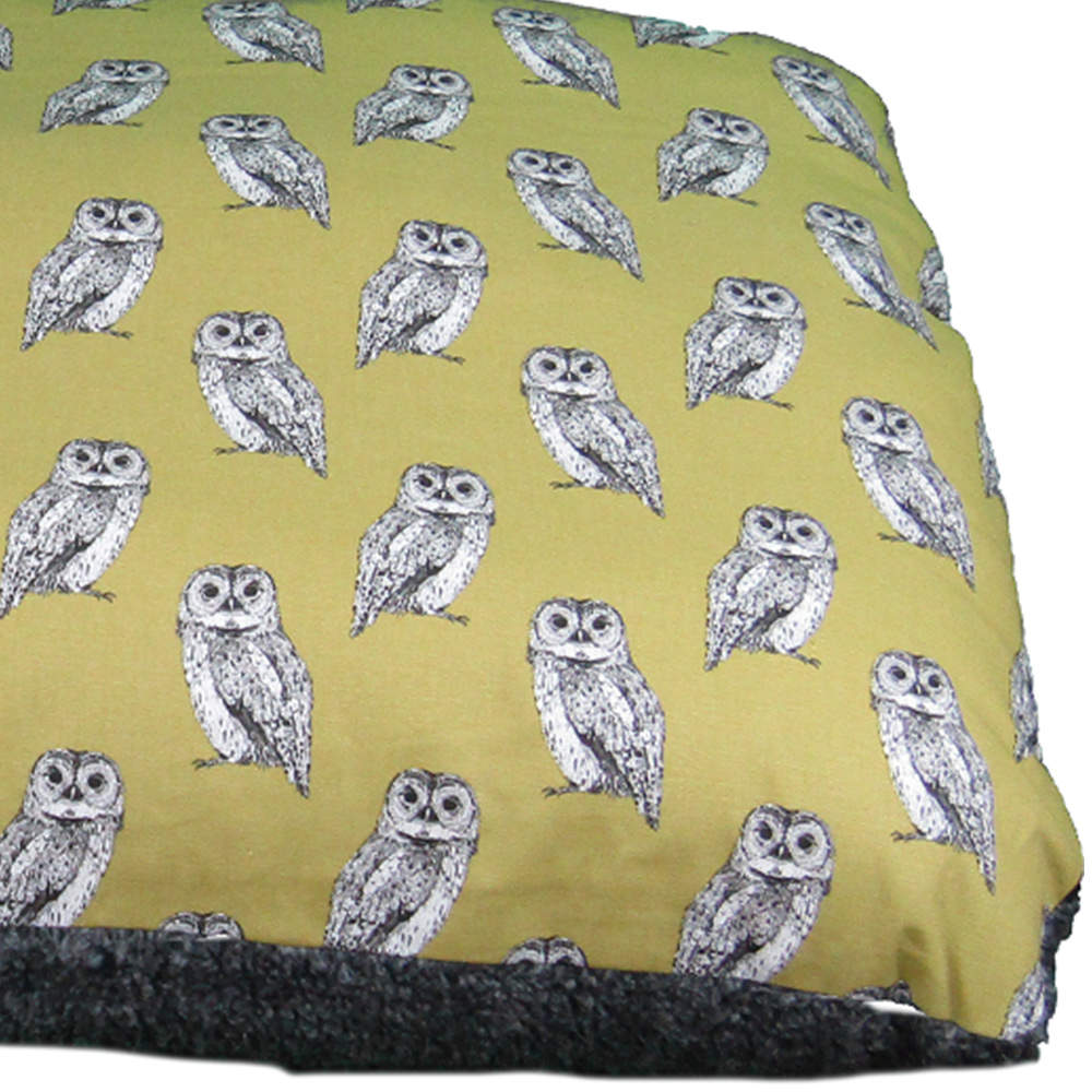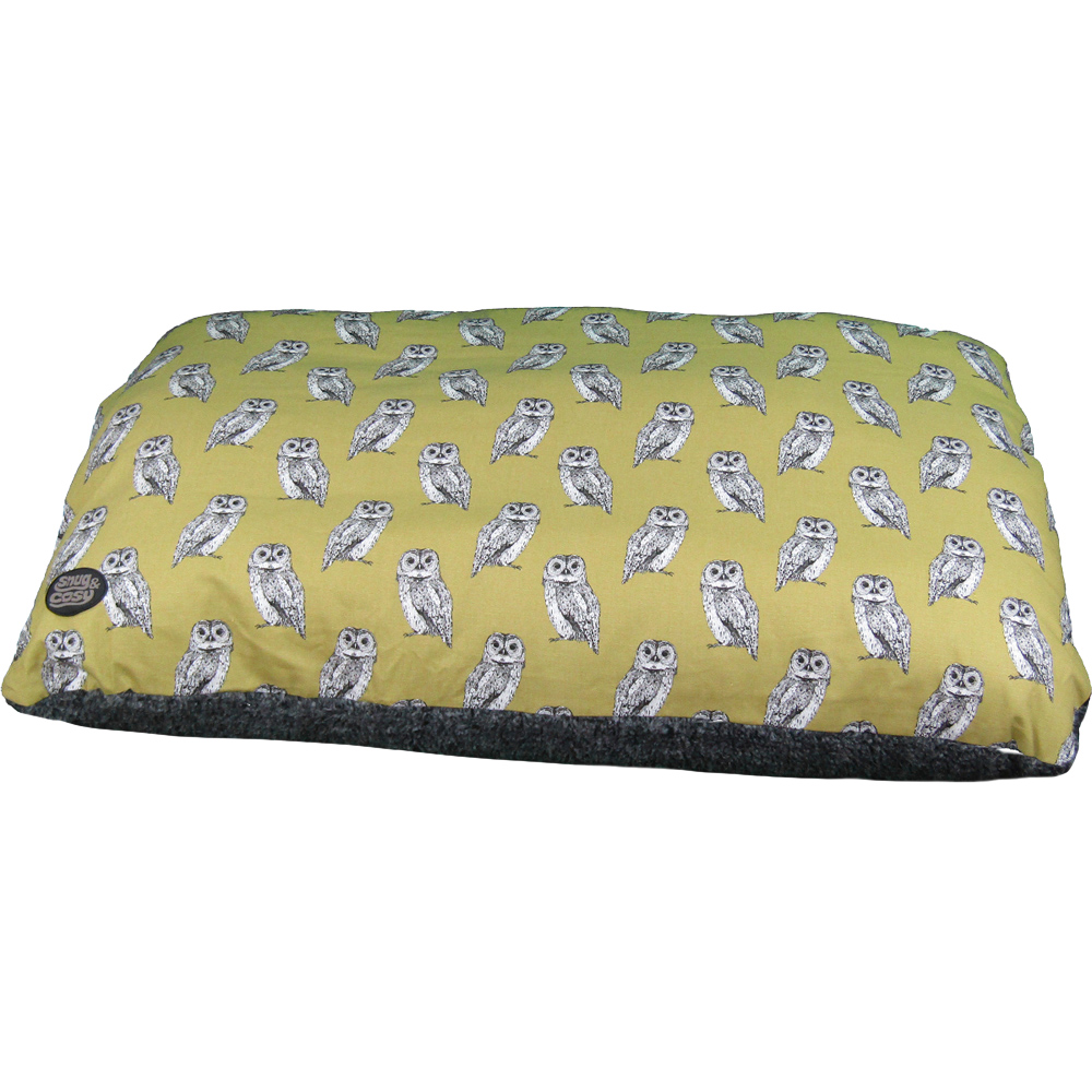 Treat your furry companion to a luxurious and elegant retreat with the Snug & Cosy Large Owl Print Dog Lounger Bed. This bed is designed with a reversible inner cushion and a non-slip base to offer comfort and security for your beloved pet. The bed is meticulously constructed with a 100% virgin hollow fibre wall and a soft inner pad, ensuring it is lightweight, breathable, and perfect for dogs with sensitive skin. Its waterproof base prevents moisture from seeping through, while the high-quality printed fabric with fleece lining adds an extra layer of warmth and comfort. Furthermore, the product is overfilled to ensure your pet's ultimate comfort and the cushion is removable and washable. Care Instructions: Machine Washable - Simply machine wash cold on delicate and hang to dry. If the bed has faux fur, use a pet care brush with widely spaced metal bristles (this kind of brush is called a slicker brush). Brush and fluff carefully so you don't damage the faux fur's fabric.