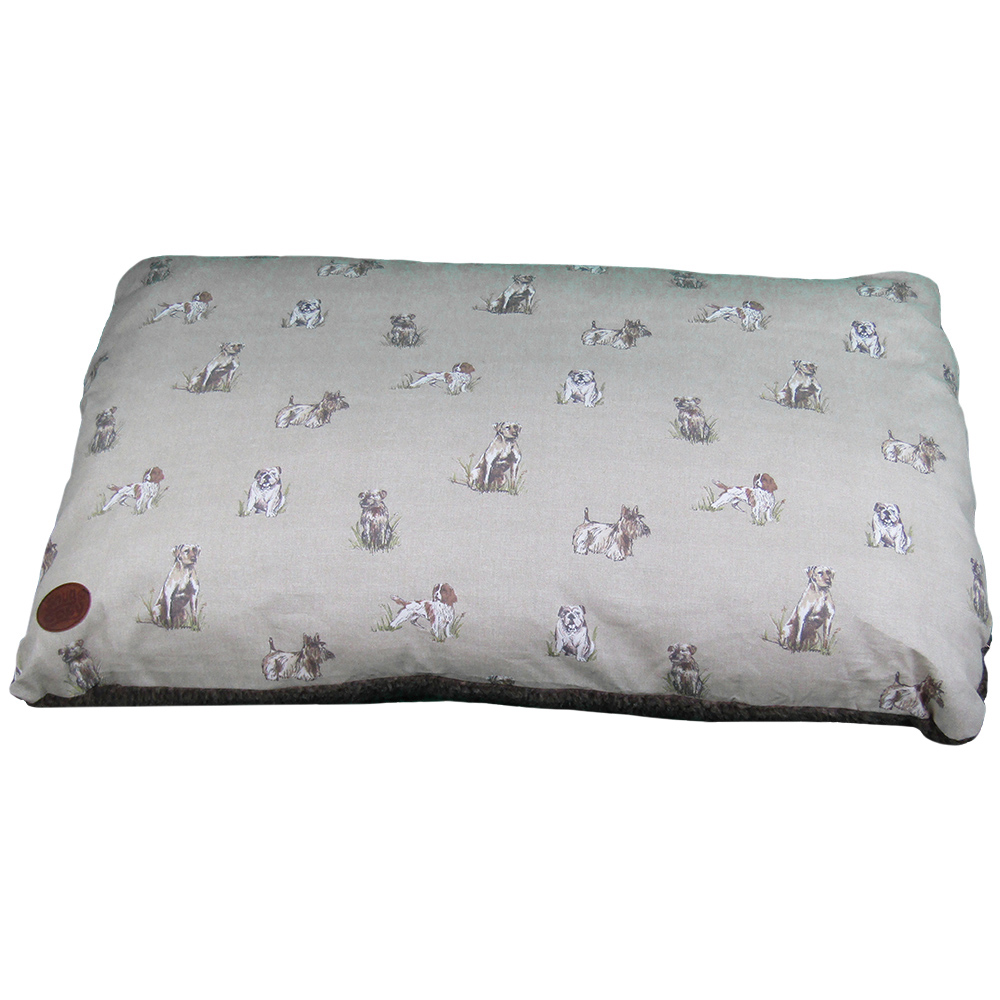 Treat your furry companion to a luxurious and elegant retreat with the Snug & Cosy Large Pooch Print Dog Lounger Bed. This bed is designed with a reversible inner cushion and a non-slip base to offer comfort and security for your beloved pet. The bed is meticulously constructed with a 100% virgin hollow fibre wall and a soft inner pad, ensuring it is lightweight, breathable, and perfect for dogs with sensitive skin. Its waterproof base prevents moisture from seeping through, while the high-quality printed fabric with fleece lining adds an extra layer of warmth and comfort. Furthermore, the product is overfilled to ensure your pet's ultimate comfort and the cushion is removable and washable. Care Instructions: Machine Washable - Simply machine wash cold on delicate and hang to dry. If the bed has faux fur, use a pet care brush with widely spaced metal bristles (this kind of brush is called a slicker brush). Brush and fluff carefully so you don't damage the faux fur's fabric.
