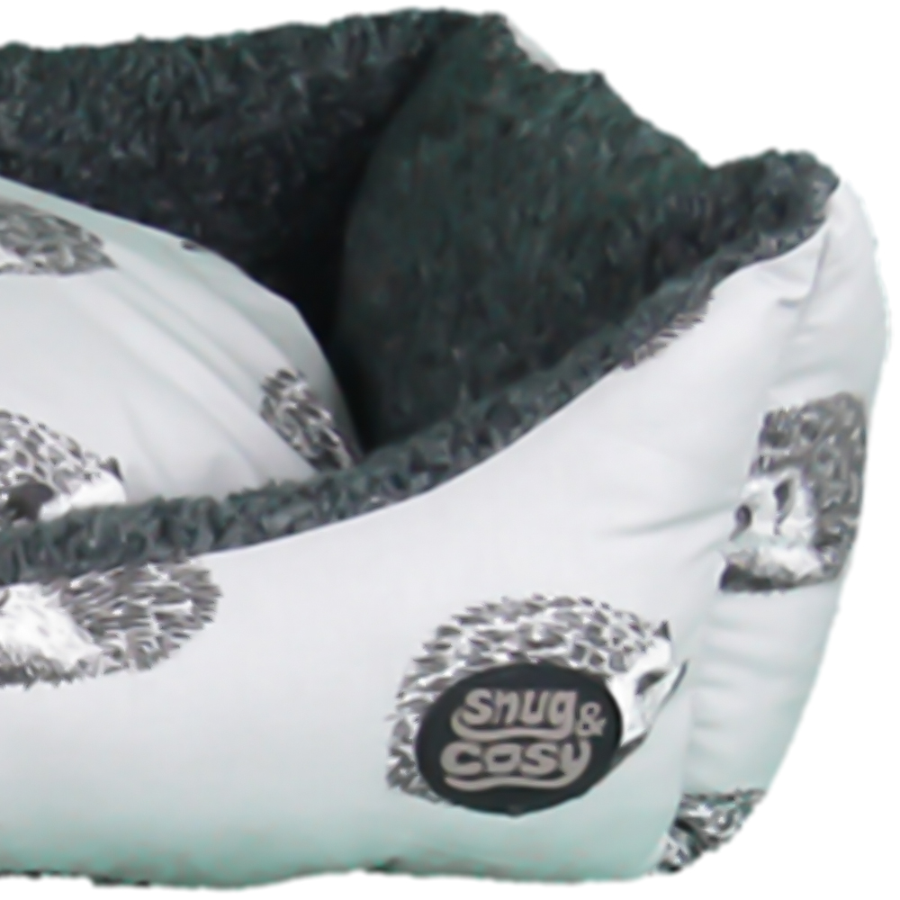 Treat your furry companion to a luxurious and elegant retreat with the Snug & Cosy Medium Rectangle Hedgehog Print Dog Bed. This bed is designed with a reversible inner cushion and a non-slip base to offer comfort and security for your beloved pet. The bed is meticulously constructed with a 100% virgin hollow fibre wall and a soft inner pad, ensuring it is lightweight, breathable, and perfect for dogs with sensitive skin. Its waterproof base prevents moisture from seeping through, while the high-quality printed fabric with fleece lining adds an extra layer of warmth and comfort. Furthermore, the product is overfilled to ensure your pet's ultimate comfort and the cushion is removable and washable. Care Instructions: Machine Washable - Simply machine wash cold on delicate and hang to dry. If the bed has faux fur, use a pet care brush with widely spaced metal bristles (this kind of brush is called a slicker brush). Brush and fluff carefully so you don't damage the faux fur's fabric.
