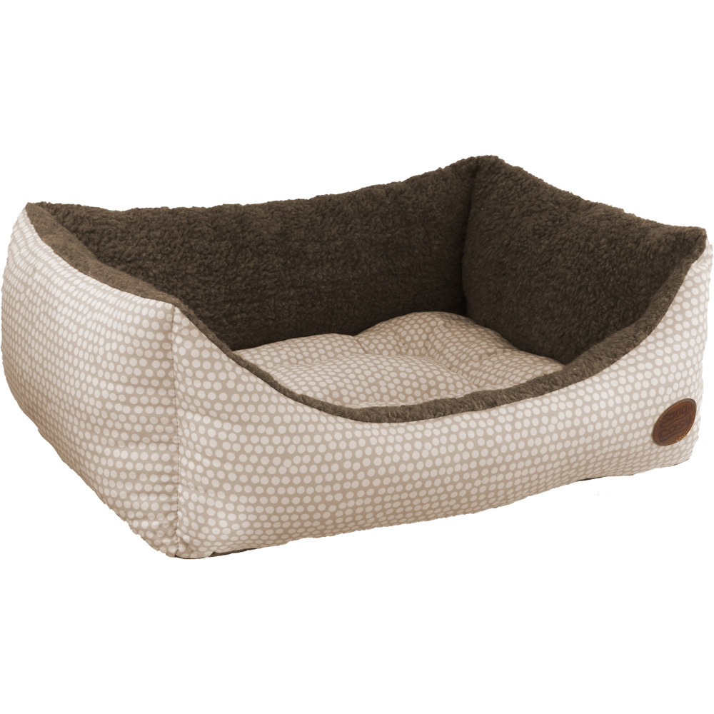 Offer your furry friend ultimate comfort with the Snug & Cosy Medium Rectangle Mocha Polka Dot Dog Bed. This cosy bed is designed with a washable and reversible inner cushion, making it easy to keep clean, and it can be conveniently machine-washed. Crafted from high-quality fabric with a soft fleece lining, this bed provides a luxurious resting spot for your pet. The overfilled 100% virgin hollow fibre filling ensures optimal comfort, while the bed also comes complete with a waterproof base for extra protection. Care Instruction: Simply machine wash cold on delicate and hang to dry. If the bed has faux fur, use a pet care brush with widely spaced metal bristles (this kind of brush is called a slicker brush). Brush and fluff carefully so you don't damage the faux fur's fabric.
