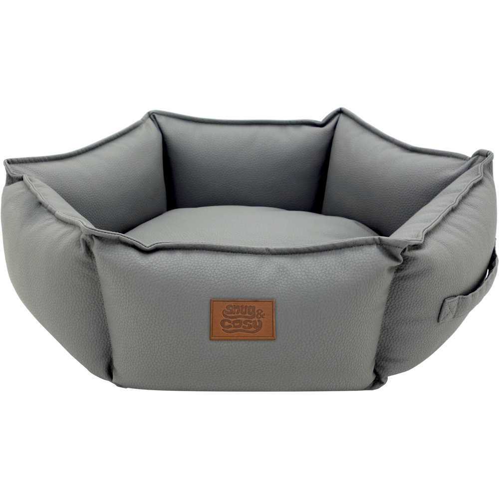 Enhance your dog's comfort with the Snug & Cosy Monza Medium Hexagon Grey Dog Bed, a perfect blend of sophistication and practicality. Crafted from high-quality faux leather, this bed is designed to resist water, making it ideal for any setting. It has a zipped removable cover, which allows for easy cleaning and maintenance. This bed offers a compact yet comfortable lounging experience, perfect for any room in your home.