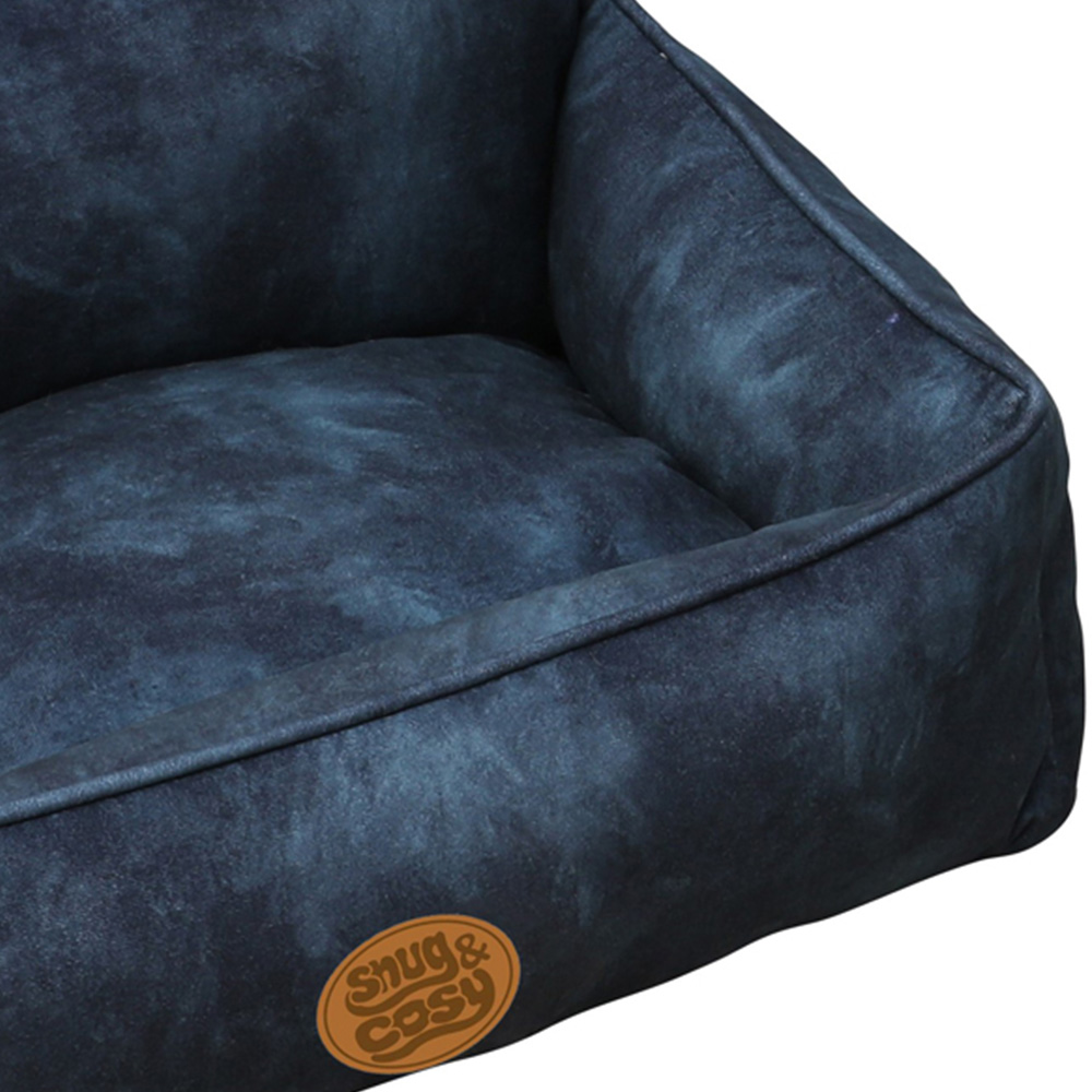 Make your dog happy with the Snug & Cosy Windsor Medium Square Navy Dog Bed. This bed features thick cushioned walls and a raised back wall, providing superior support and cosiness. The non-slip base ensures stability. It has a zipped removable cover, which allows for easy cleaning and maintenance.