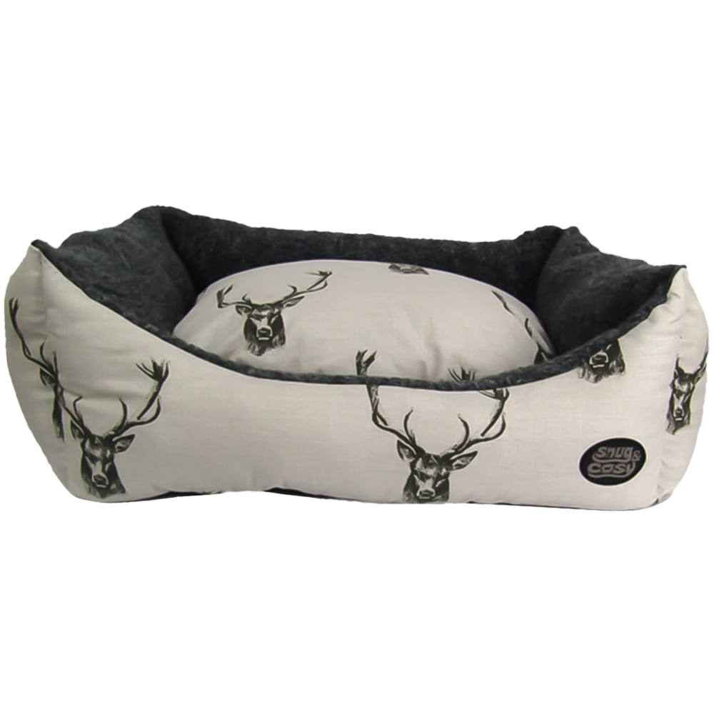 Treat your furry companion to a luxurious and elegant retreat with the Snug & Cosy XXL Rectangle Stag Print Dog Bed. This bed is designed with a reversible inner cushion and a non-slip base to offer comfort and security for your beloved pet. The bed is meticulously constructed with a 100% virgin hollow fibre wall and a soft inner pad, ensuring it is lightweight, breathable, and perfect for dogs with sensitive skin. Its waterproof base prevents moisture from seeping through, while the high-quality printed fabric with fleece lining adds an extra layer of warmth and comfort. Furthermore, the product is overfilled to ensure your pet's ultimate comfort and the cushion is removable and washable. Care Instructions: Machine Washable - Simply machine wash cold on delicate and hang to dry. If the bed has faux fur, use a pet care brush with widely spaced metal bristles (this kind of brush is called a slicker brush). Brush and fluff carefully so you don't damage the faux fur's fabric.
