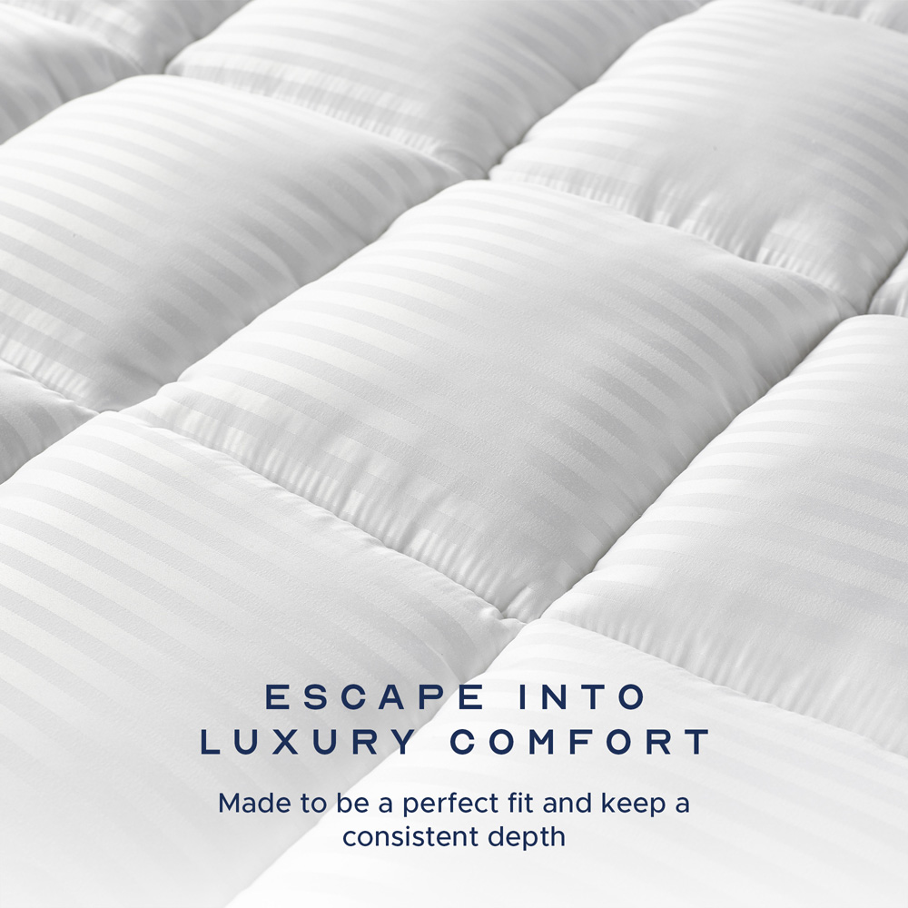 Transform your bed into a luxurious hotel retreat with the Snuggledown 10cm Luxurious Hotel Mattress Topper. Designed for those who crave extra-deep comfort and indulgent softness, this plush 10cm topper adds a sumptuously thick layer of cushioning to any mattress. The generous depth provides superior pressure relief, ensuring a softer, more supportive sleep every night. With a hypoallergenic filling, breathable fabric, and secure elasticated straps, this topper stays in place while keeping your bed fresh, cool, and comfortable.