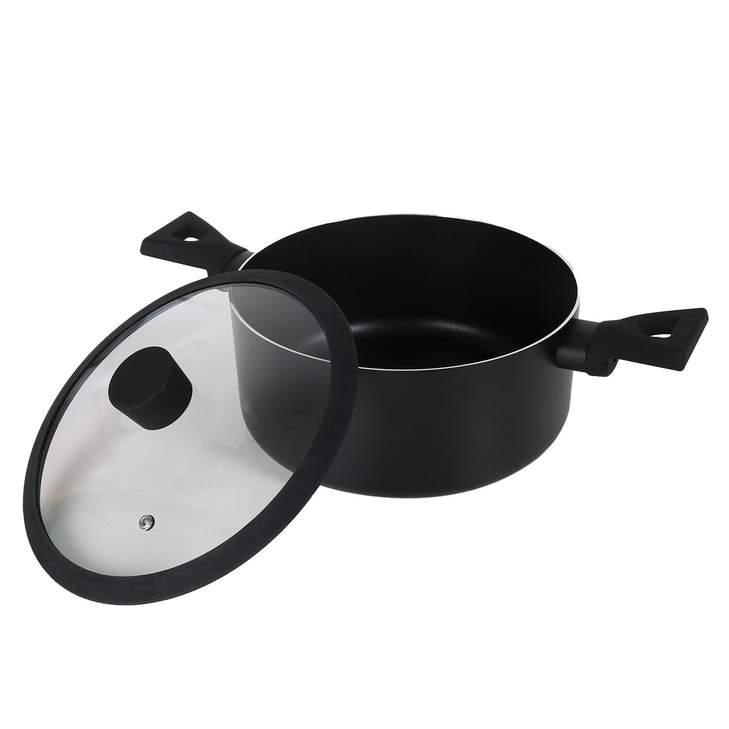 Upgrade your kitchen with the Soft Touch Non Stick Saucepan Set. This set includes 16cm, 18cm, and 20cm saucepans, each featuring a high-performance non-stick interior for easy cooking and cleaning. The pans have a high temperature-resistant exterior and a soft-touch lid with a silicone rim for added cushioning. Made from heavy-gauge aluminium, they provide even heat distribution. With a soft grip handle and tempered glass lid with a steam vent, these saucepans are suitable for all hob types, including induction.