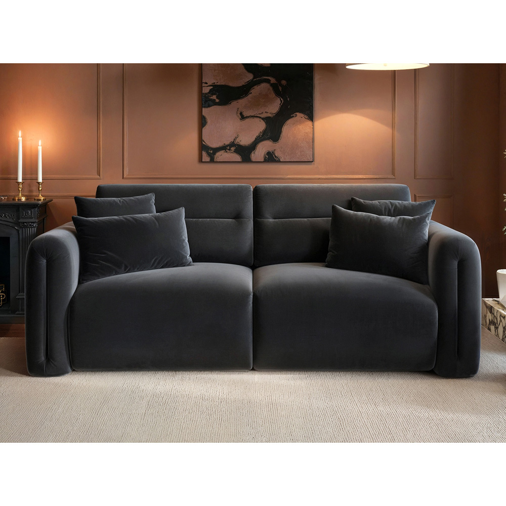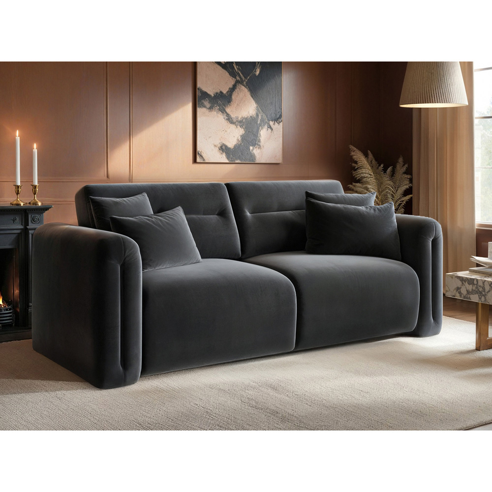 The Mabel 3 Seater Sofa is a blend of modern design and plush comfort. Upholstered in a luxurious beige chenille or elegant charcoal velvet, this piece brings contemporary touch to any living room. With its sculptural silhouette, statement arms, and supportive foam-filled cushions, the Mabel offers style and comfort.
