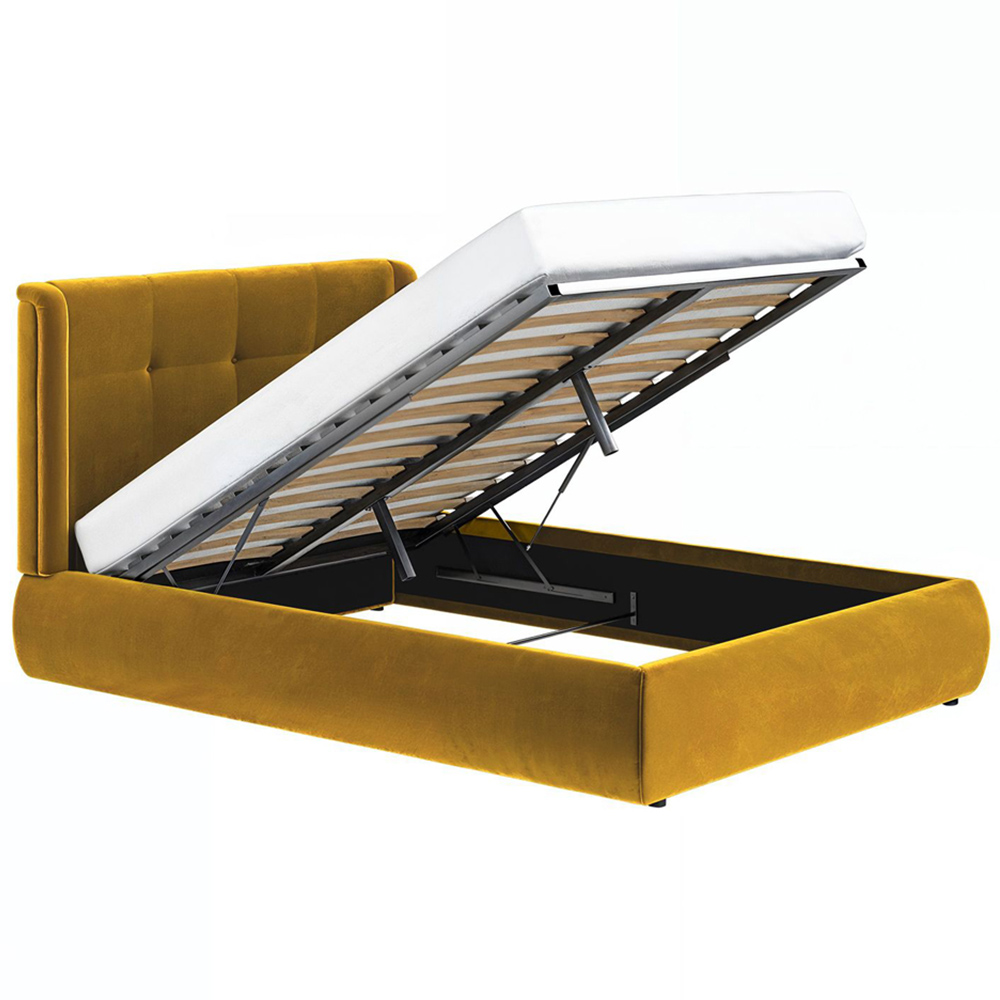 Solace+Co Monte Double Gold Velvet Ottoman Bed with Winged Button Headboard